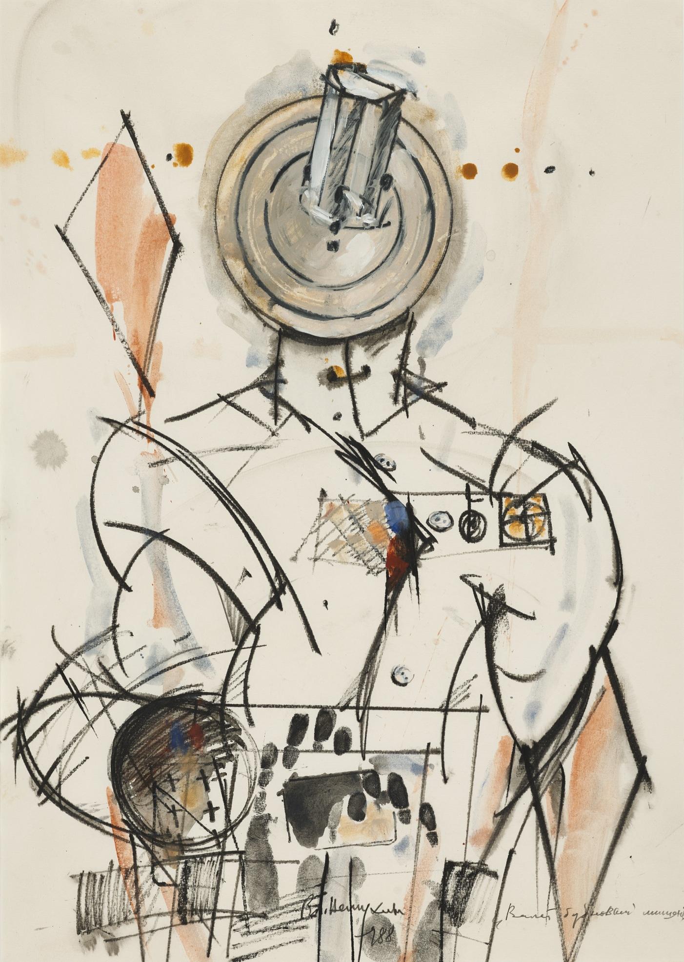 В. Немухин. «Валет бубновый. Мишень». 1988. Бумага, тушь, кисть, темпера,