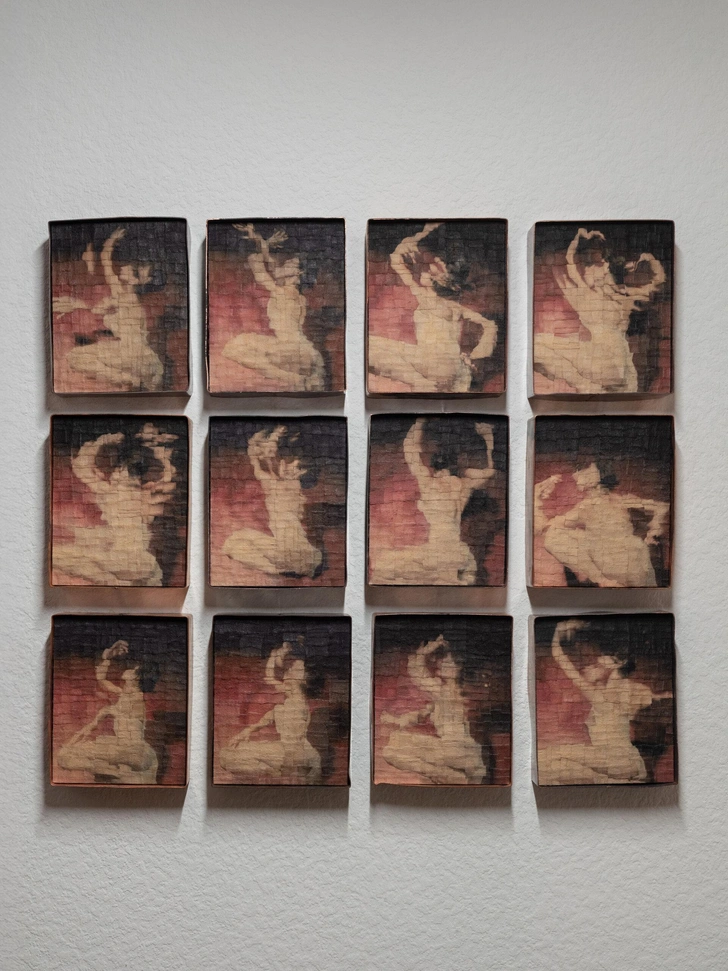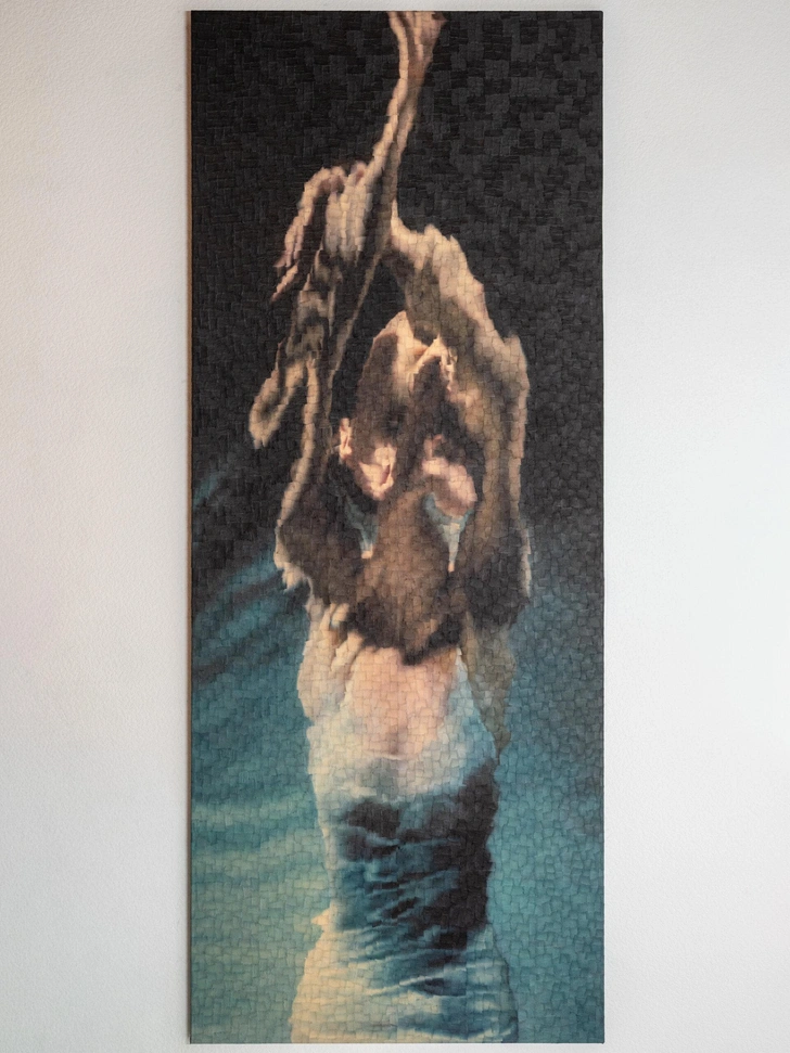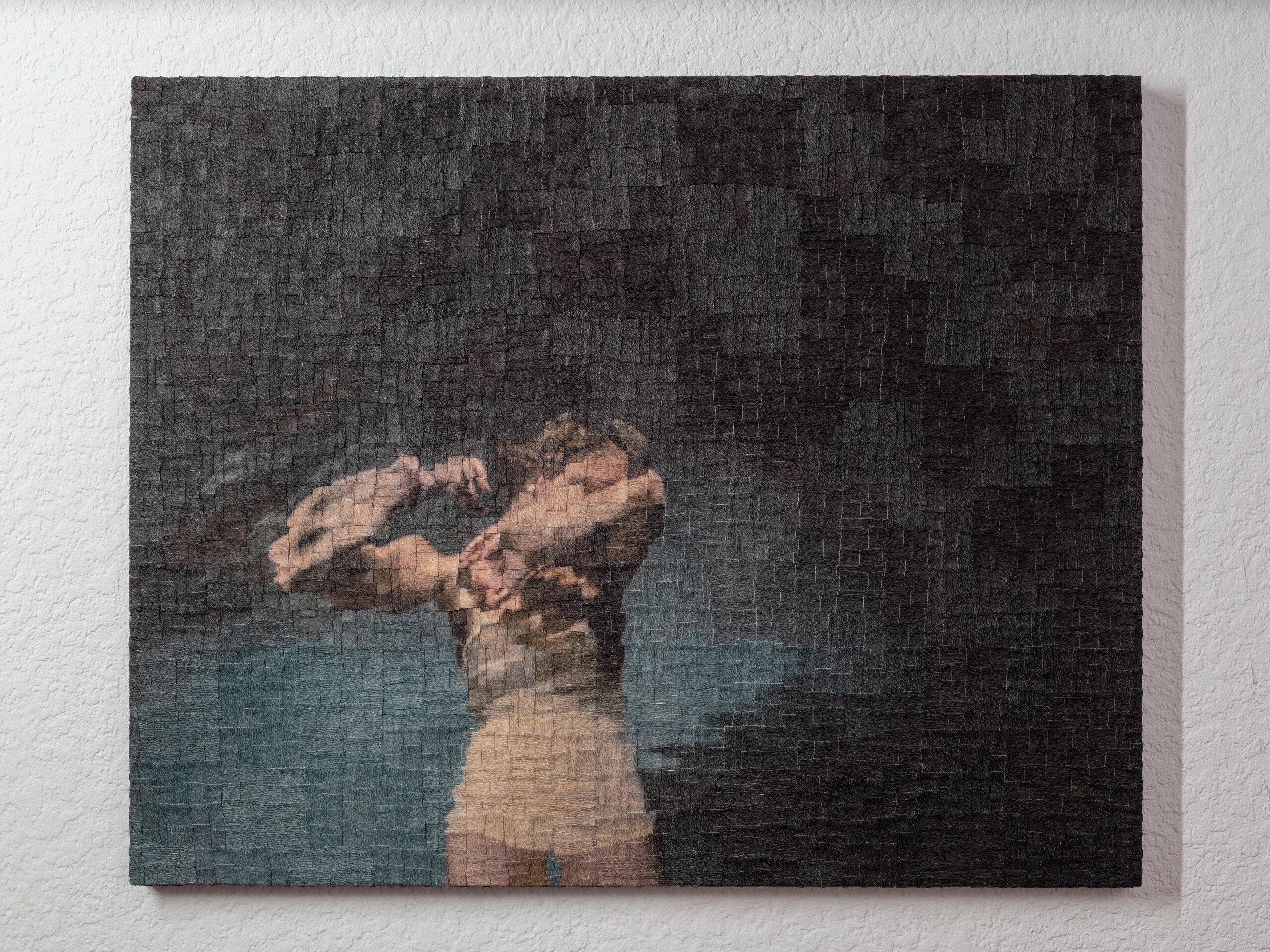 Присмотритесь к его работам: как художник создает это мерцание на грани реальности и абстракции? Не напоминают ли они вам ваши собственные воспоминания, то, как они плывут в ваших мыслях? К такому интересному эффекту Шишкин пришел из своей фотографической практики. Он создал авторскую технику коллажа: фотография печатается на гофрированной малярной ленте и нарезается на сотни фрагментов. Они деформируются, а потом художник снова собирает их вручную. «У каждого своя музыка и свое место и время для ферматы. Образ, следующий от работы к работе, подсказывает: невозможно застыть, противостоя собственной природе» — говорит Анастасия Каменская.