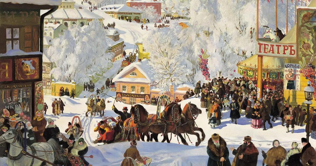 В живописи Бориса Михайловича Кустодиева Масленица была любимым сюжетом: празднику посвящено более десятка картин. Возможно, потому что сам художник родился в Масленичный четверг, 7 марта 1878 года. При этом у него была непростая судьба — почти две десятка лет он был прикован к постели из-за тяжелой болезни позвоночника. Живопись была для художника терапией: его картины полны ярких красок, а Масленица — как раз и есть праздник победы весны и жизни над смертью.