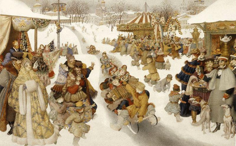 Неравнодушны к теме Масленицы и современные художники. Так, иллюстратор сказок Геннадий Спирин в своих работах не раз обращался к традиционным сюжетам, стилизуя под классическую народную живопись.
