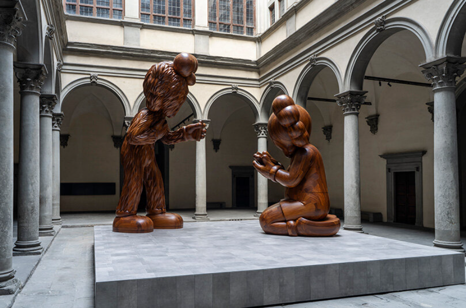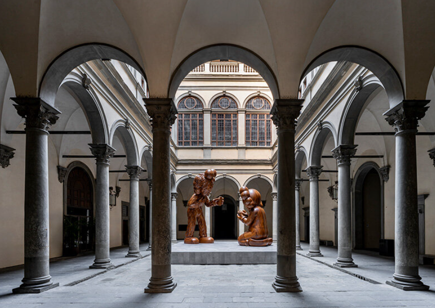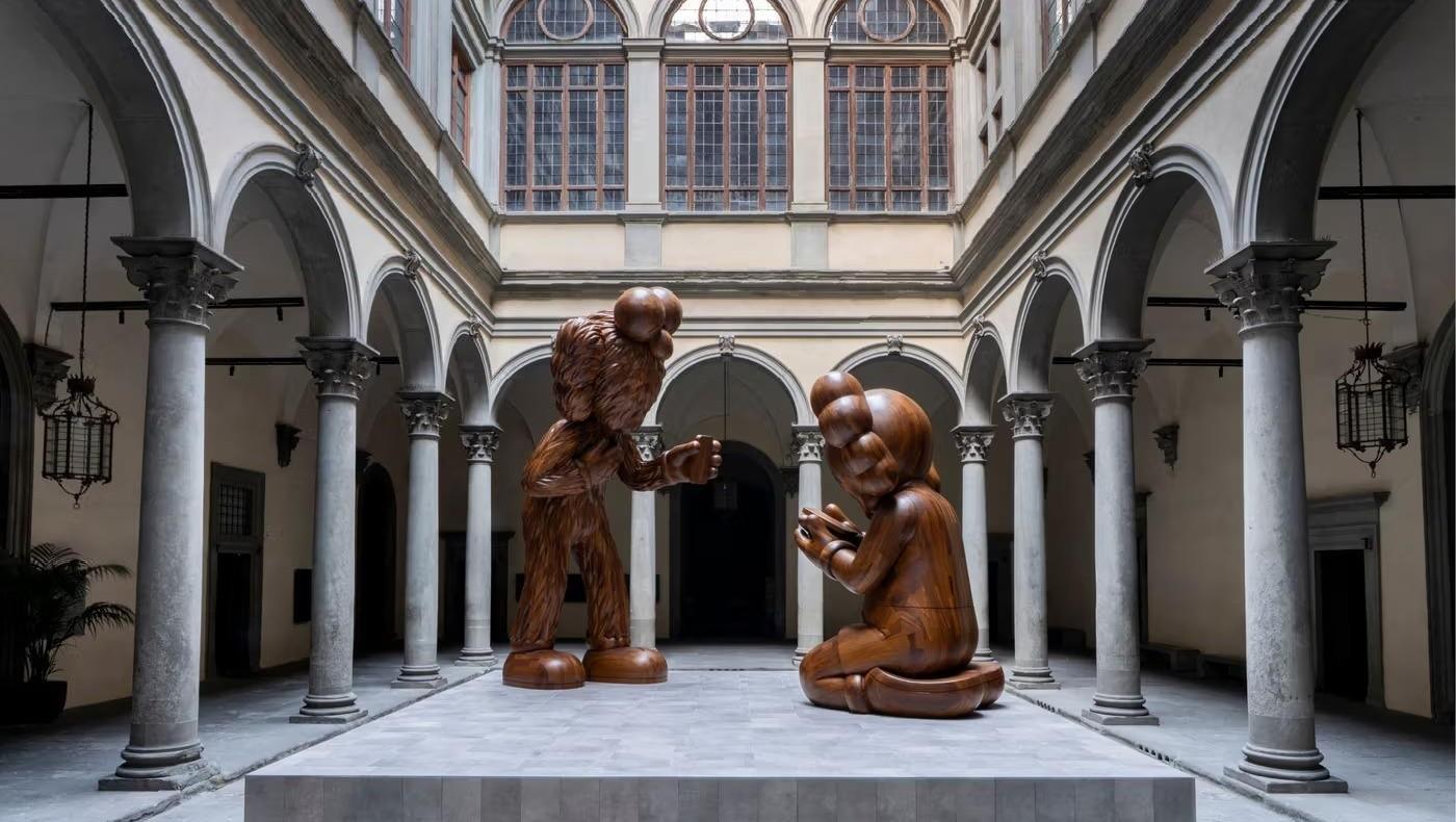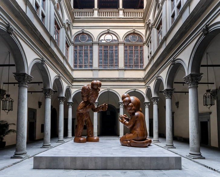 Во дворе палаццо Строцци, где проходит выставка работ Фра Беато Анджелико, представлена масштабная инсталляция «Послание» американского художника KAWS. Инсталляция совпадает с выставкой в Палаццо Строцци, посвященной Фра Анджелико, и устанавливает концептуальную связь между живописью эпохи Возрождения и современным искусством. KAWS переосмысливает традиционную тему Благовещения через своих персонажей Companion («Компаньон») и BFF («Лучшая подруга»), каждый из которых погружен в свой телефон. Этот жест переводит исторический момент откровения на язык цифровой коммуникации.