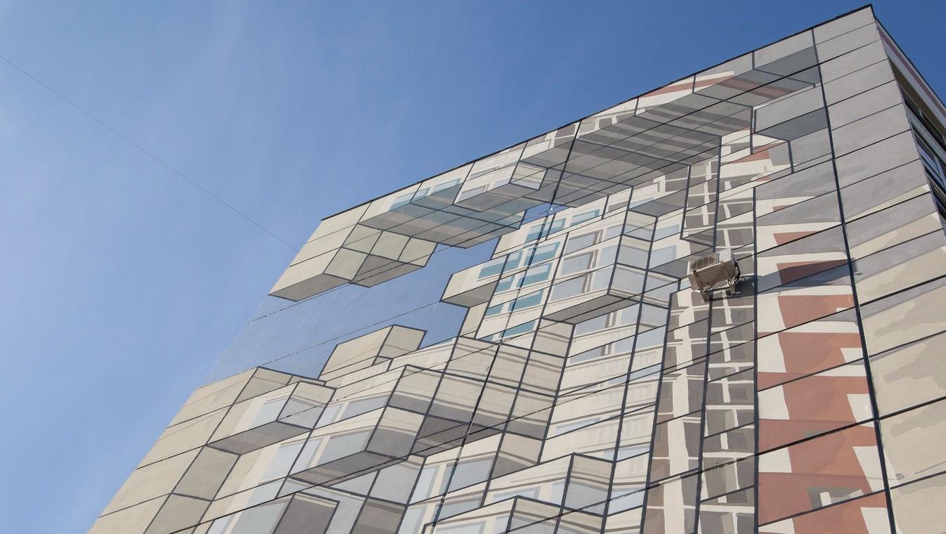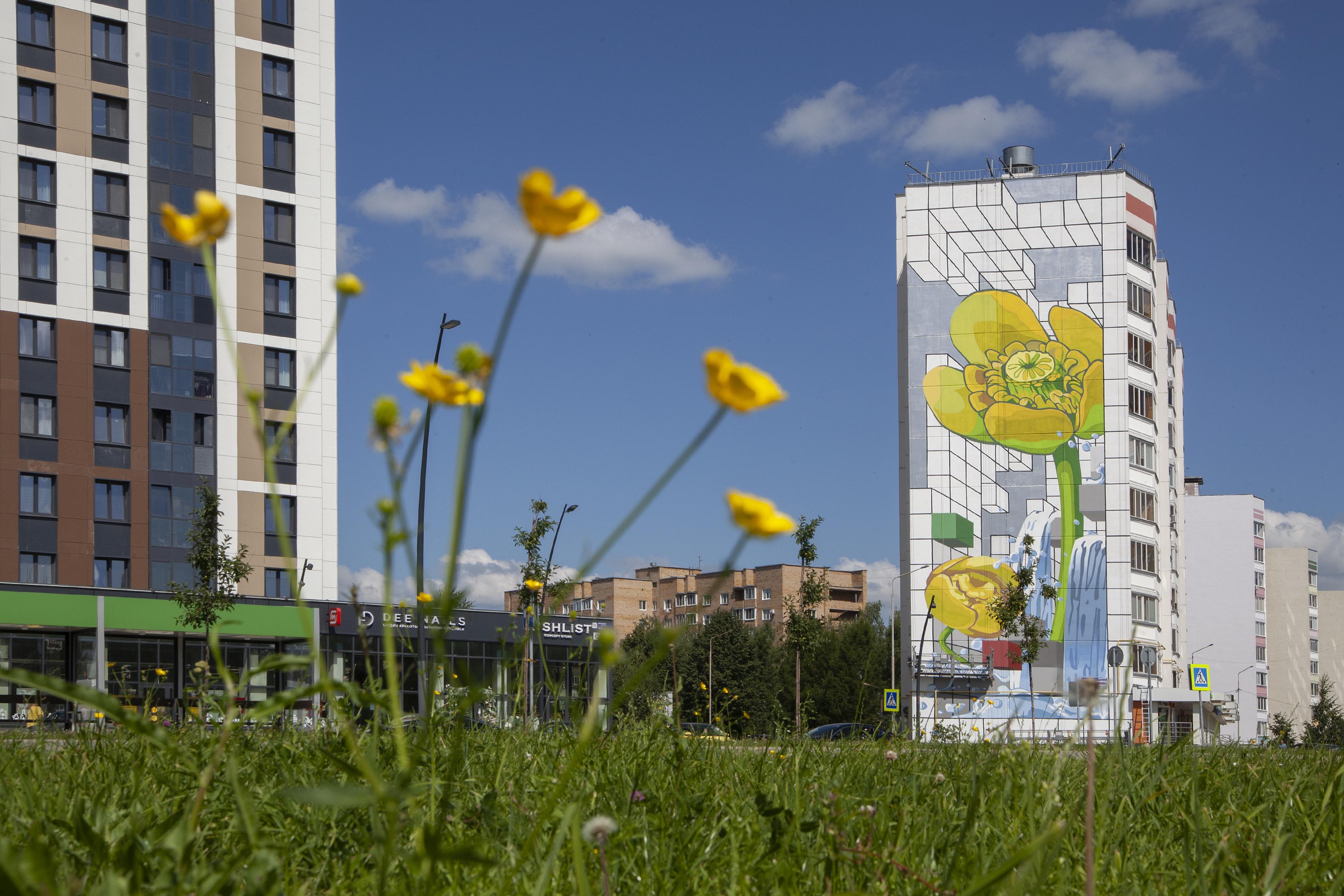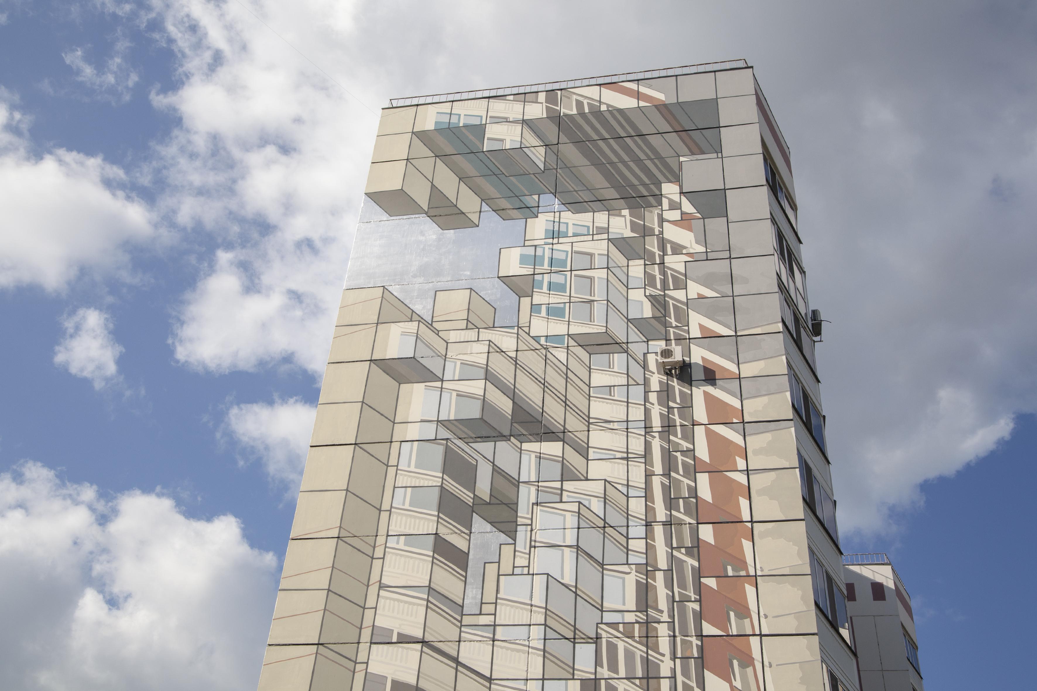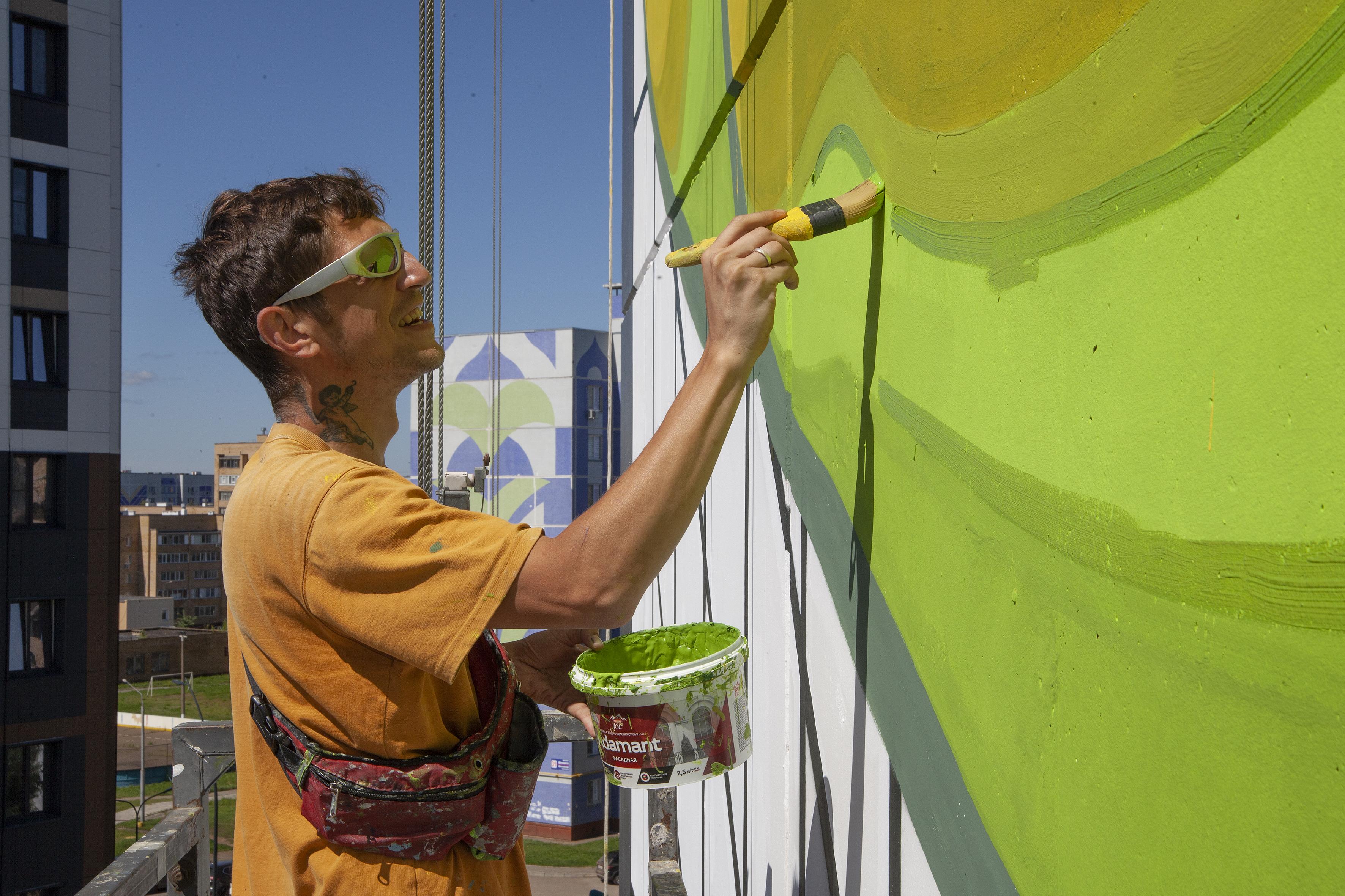Для работы над серией муралов был приглашен Артем Стефанов (STFNV) — известный российский художник-монументалист и мастер оптических иллюзий. Полиптих, органично встроенный в геометрию и ритм типовой архитектуры, стал единым художественным полотном, где каждый мурал — глава общей истории о том, как в индустриальном городе рождается, расцветает и сохраняется жизнь.
