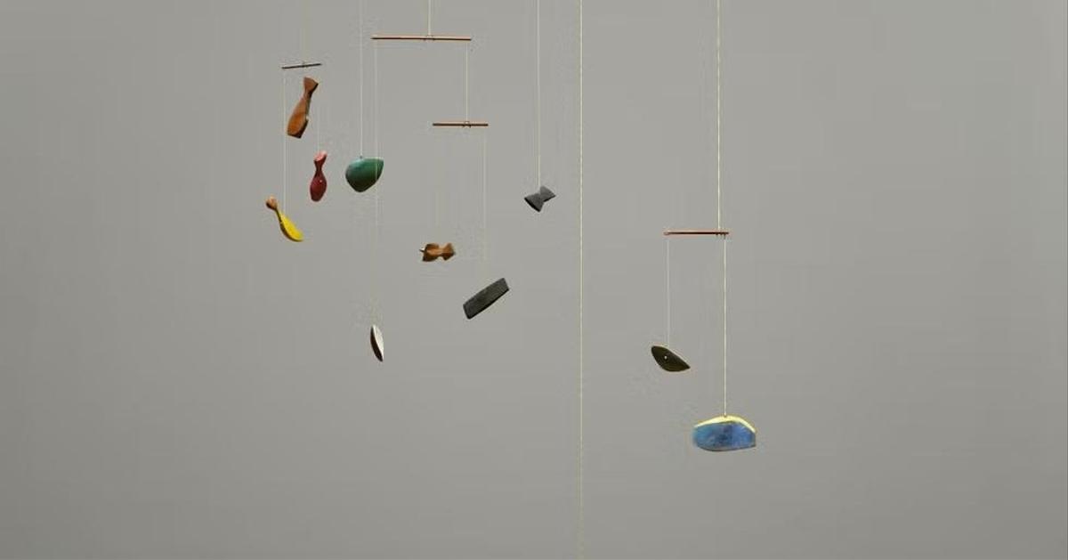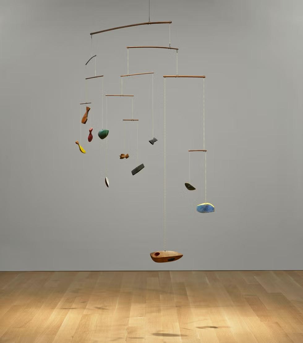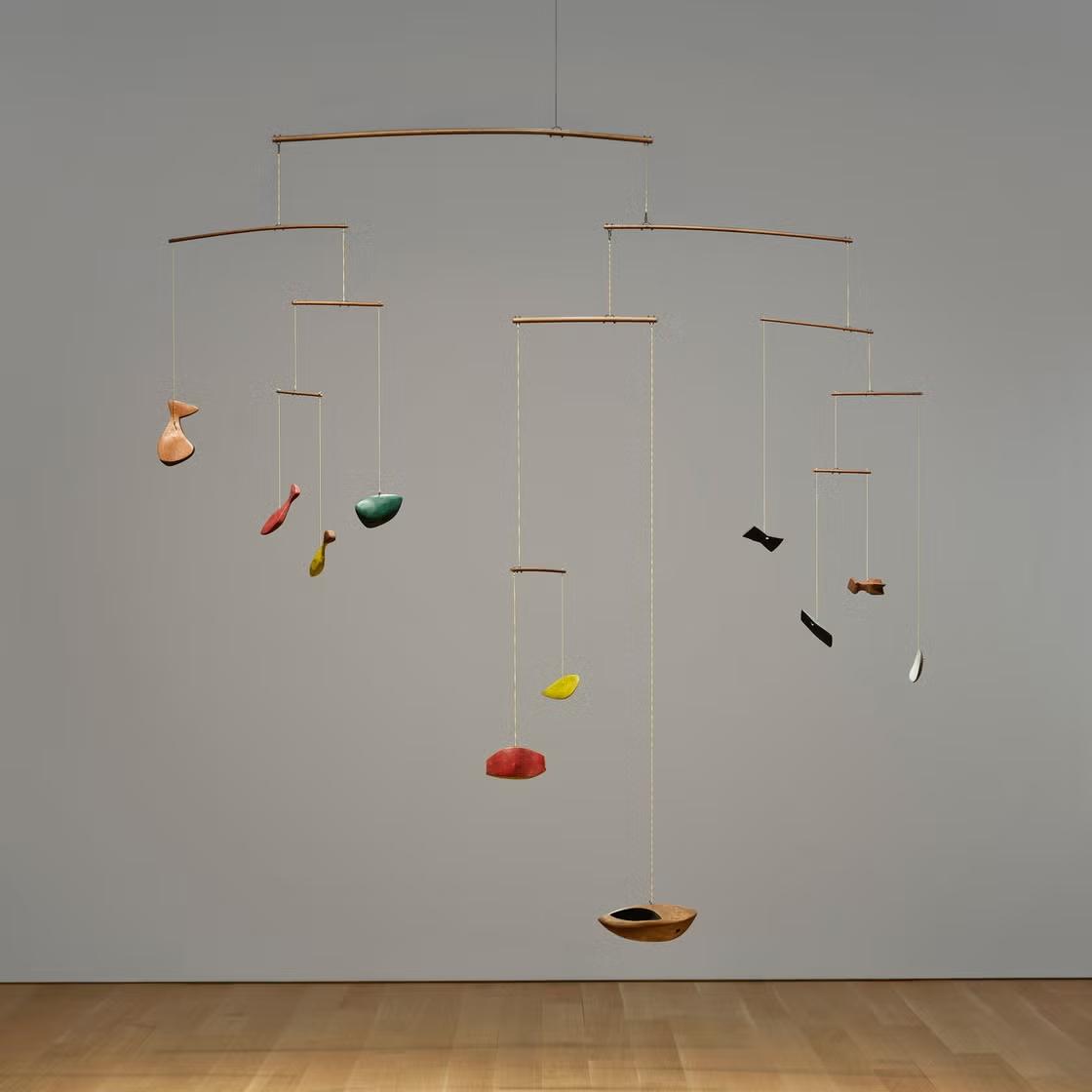 Мобиль «Раскрашенное дерево» входит в раннюю серию Колдера «Созвездия» и состоит из 11 подвесных деревянных элементов. Работ впервые выставили в 1943 году в Музее современного искусства в Нью-Йорке (МоМА). Скульптору было всего 45 лет на момент открытия выставки, и он стал самым молодым автором, чьи работы когда-либо экспонировались в МоМА.