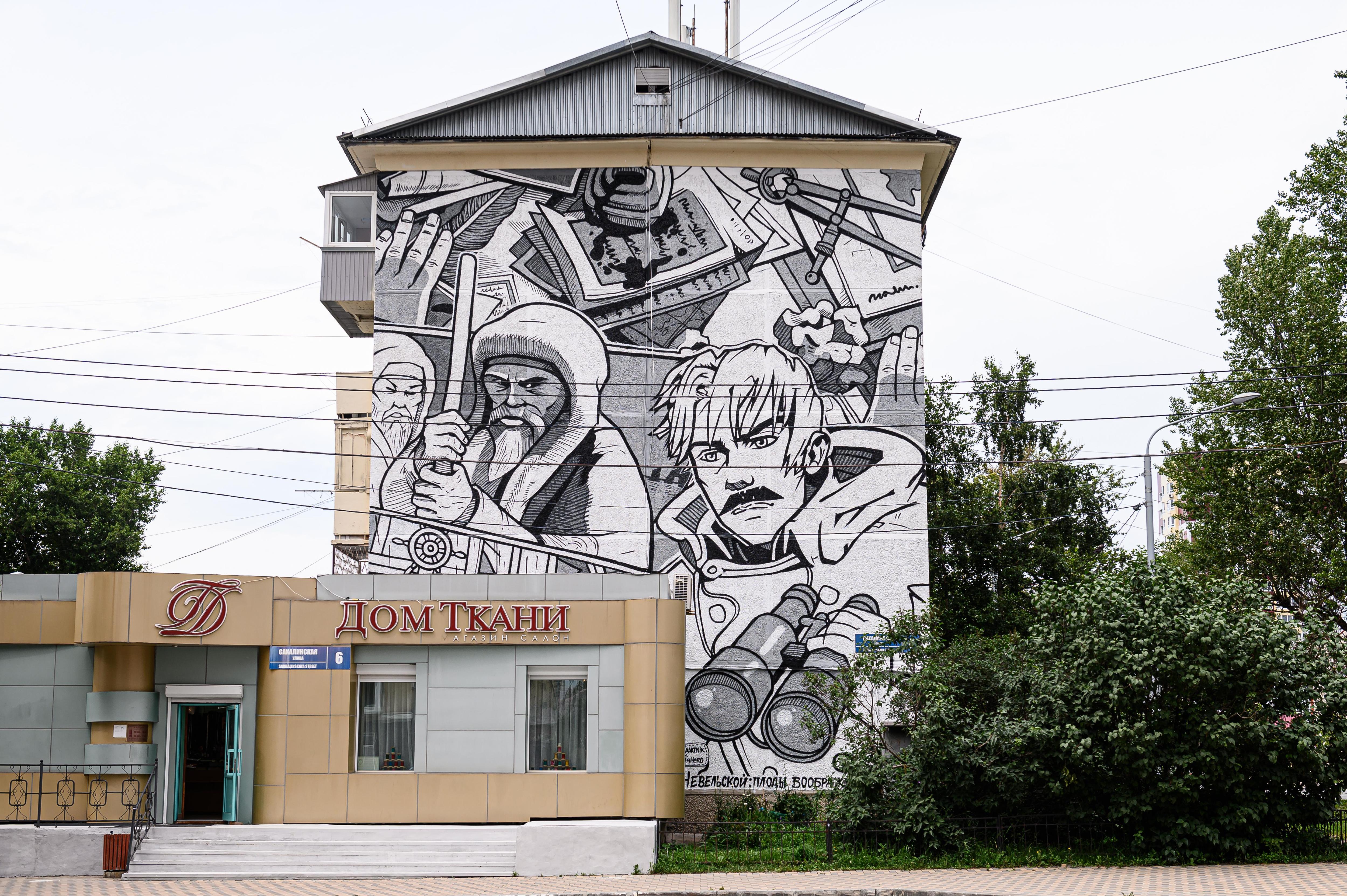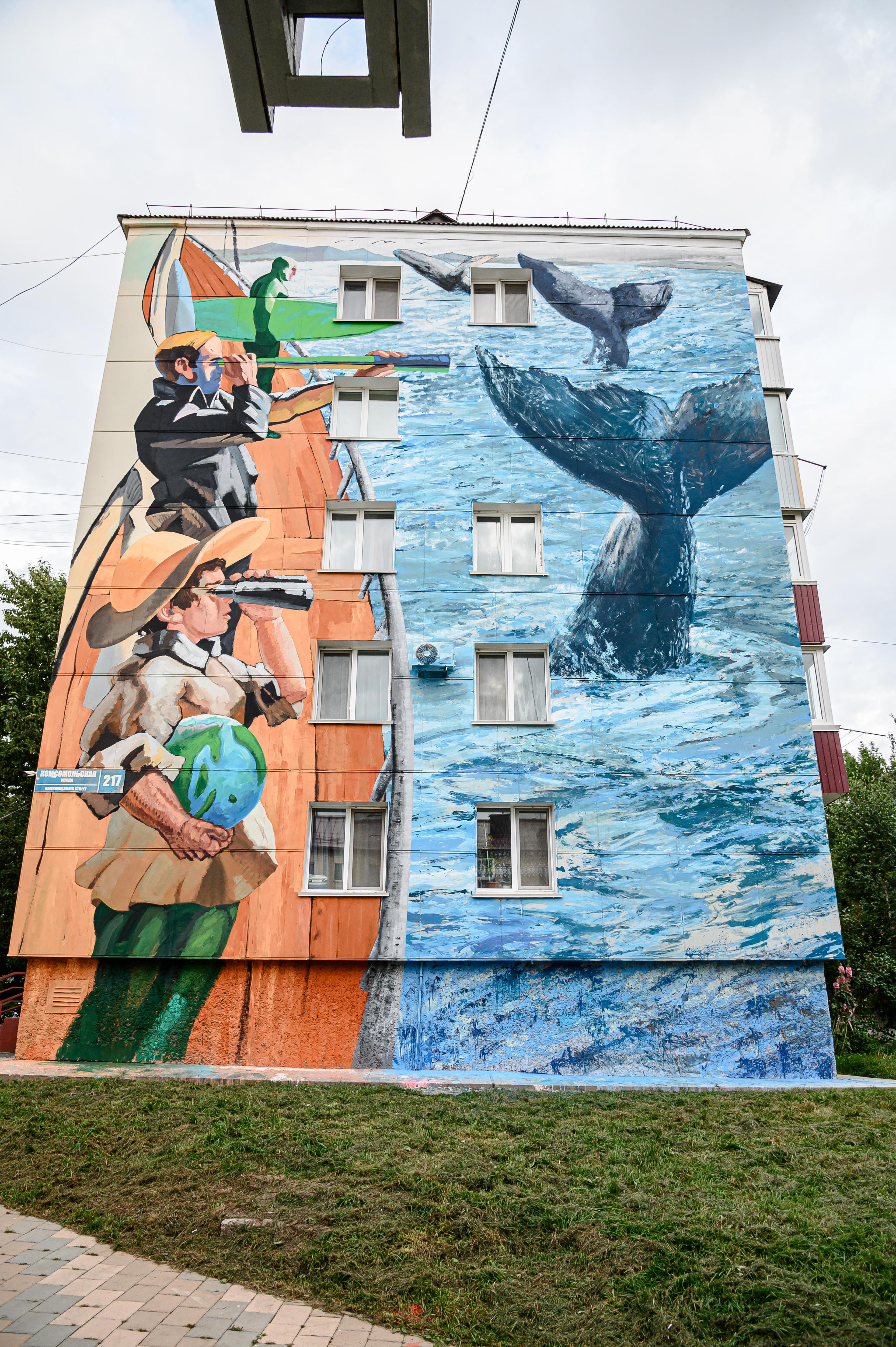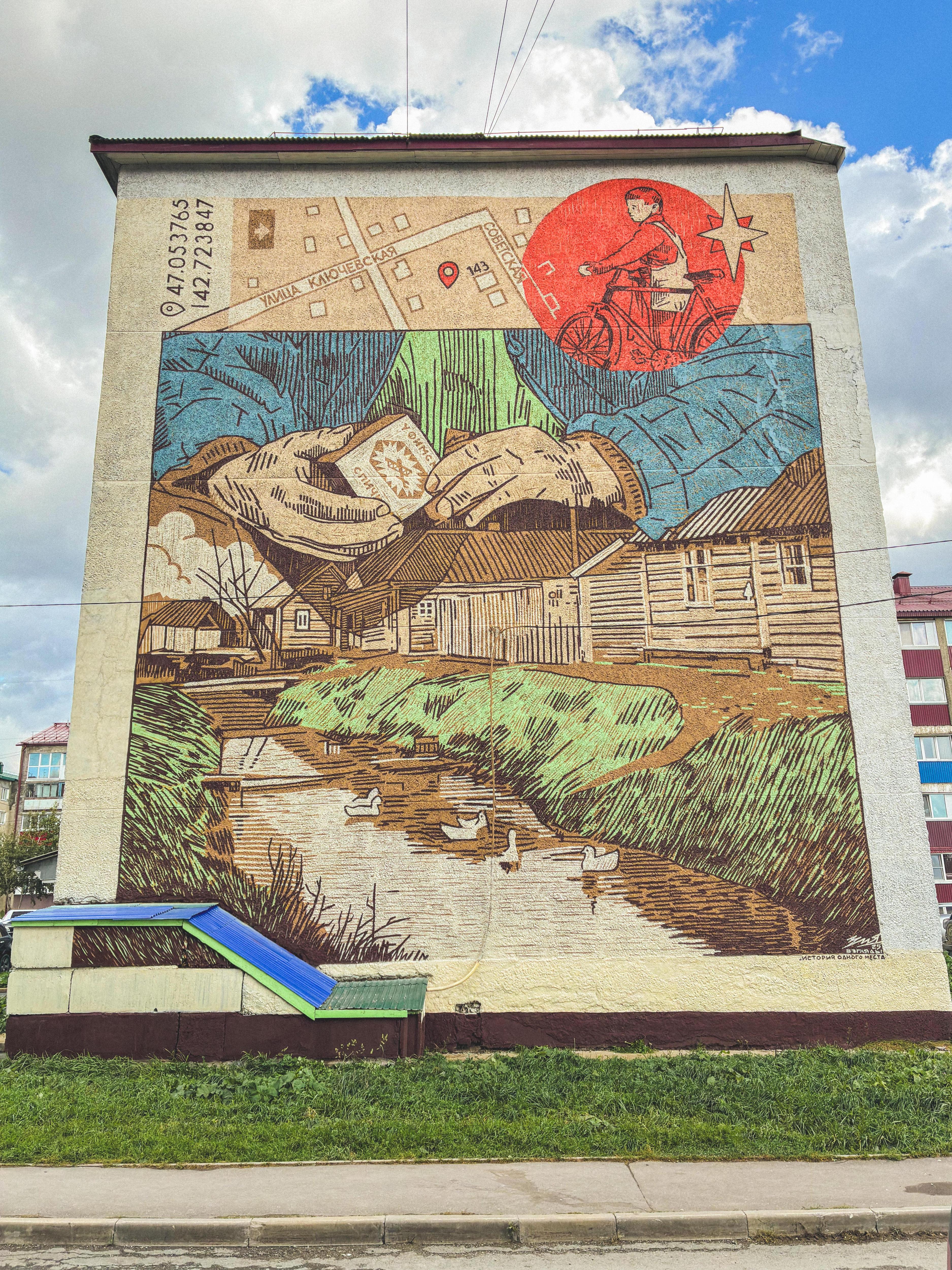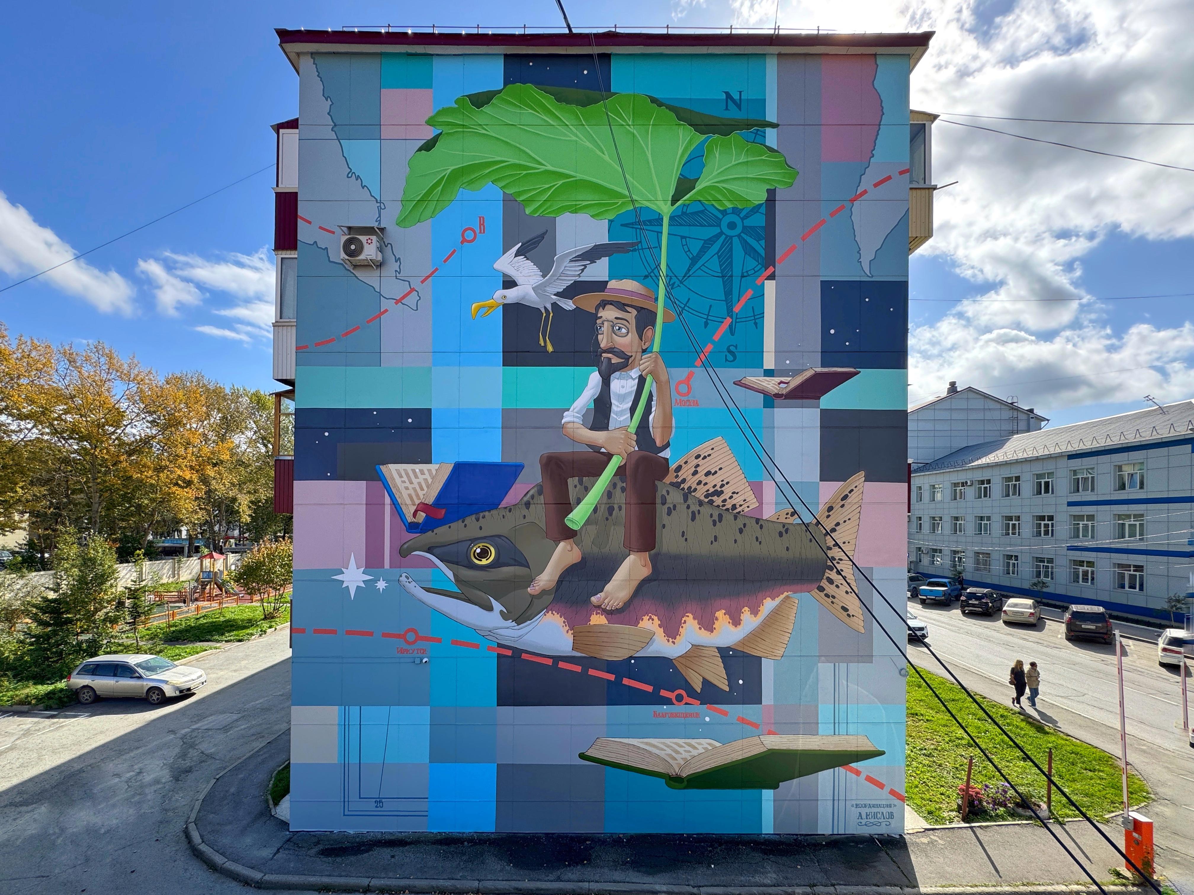 На самом деле в Южно-Сахалинске появилось больше муралов за последние годы. Только в прошлом сезоне создано более 50 росписей, а в этом году более 30. Искусство уличной волны развивалось здесь и до нашего проекта, поэтому сейчас в городе более ста муралов. Конечно, это очень много.