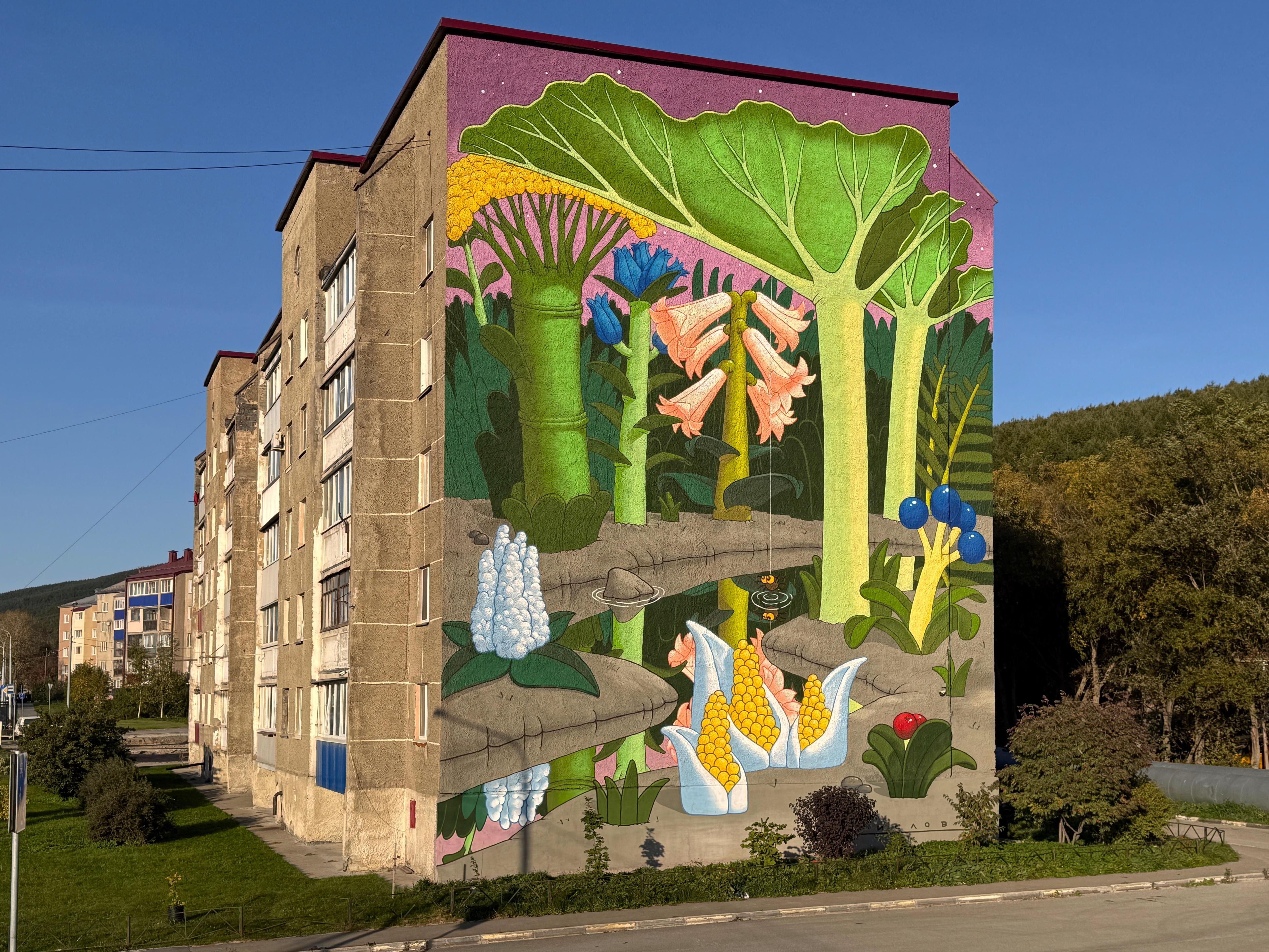 В этом году мы пригласили художников для создания муралов вне конкурса. И заложили больше времени на изучение локального контекста, подготовки тем работ и проработку эскизов. Но при этом сохранили и конкурсную составляющую — провели опен-колл на создание объемных арт-объектов в Южно-Сахалинске. Уход от плоскости стен — важный этап развития программы, и такой формат позволит обеспечивать комплексный подход по развитию городской среды.