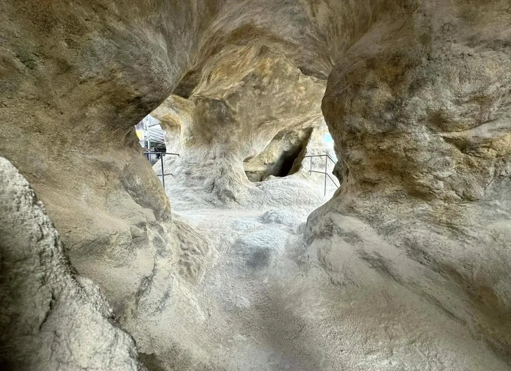 Снаружи теперь зияют огромные провалы. Кажется, будто дом пережил извержение или был построен прямо вокруг скалы. Внутри темнота, ориентироваться помогают специальные пандусы.