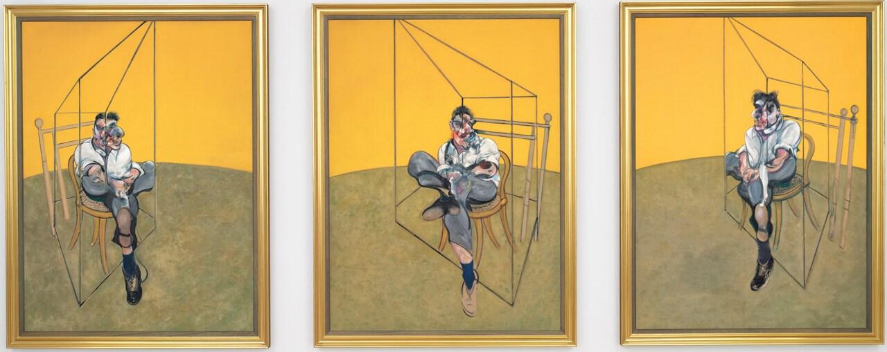 Легендарный триптих, изображающий коллегу и друга Бэкона, художника Люсьена Фрейда. Работа полна напряженности и психологической глубины, характерной для Бэкона. Искаженные фигуры заключены в гнетущее пространство, что делает ее одним из самых мощных портретов XX века.