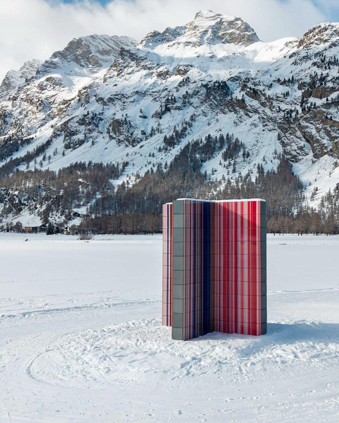 В рамках выставки Elevation 1049 в Швейцарии Luma Foundation представили красочную инсталляцию Strip Tower (962) немецкого художника Герхарда Рихтера (Gerhard Richter). Объект высотой более пяти метров состоит из восьми панелей, облицованных глазурованной керамической плиткой. На каждой из них — вертикальные цветные полосы, создающие разные оптические эффекты в зависимости от угла зрения. Объект отсылает к творческой практике Рихтера, как бы перенося его картины в трехмерное пространство.