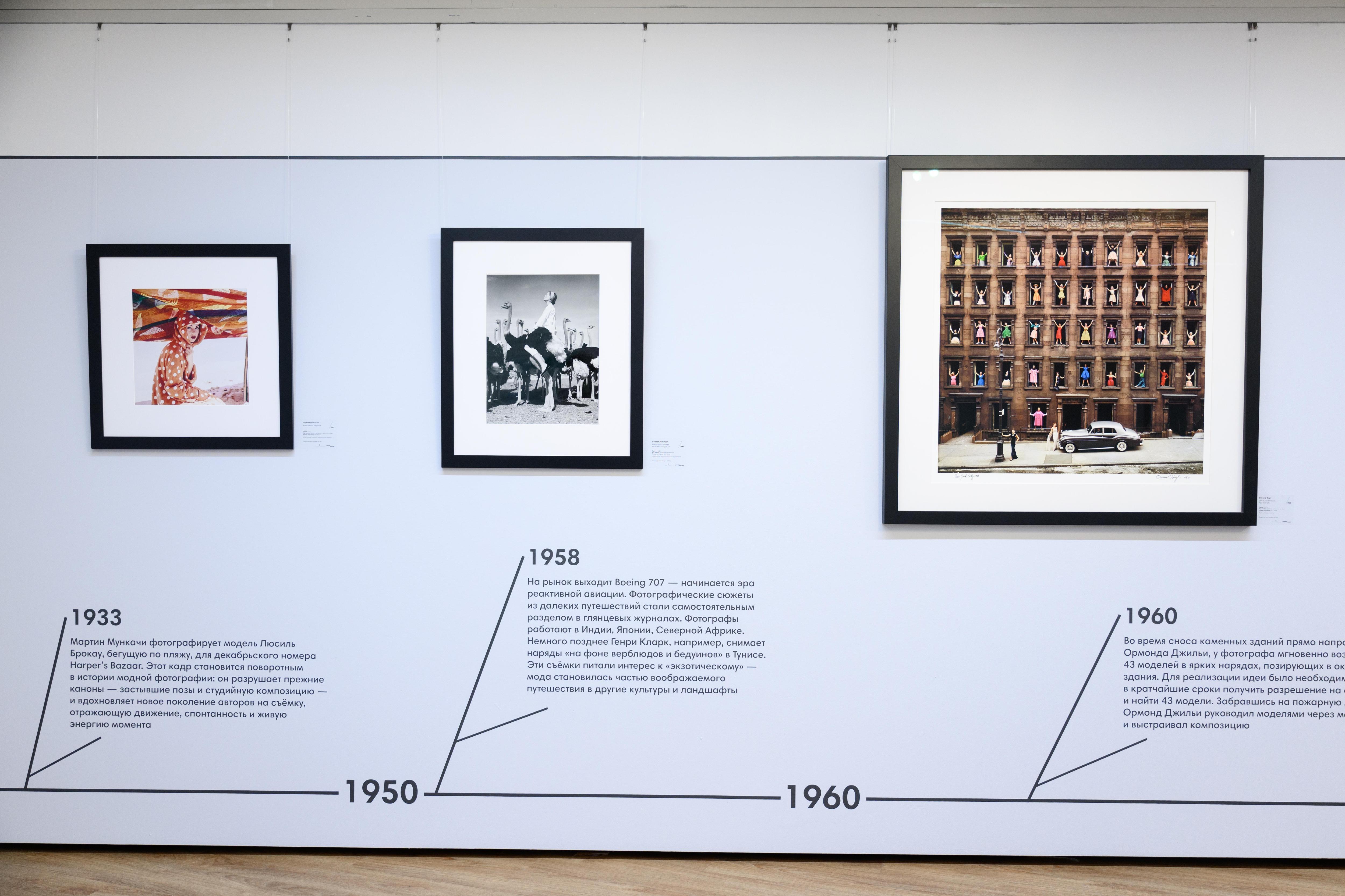 На выставке собраны фотографии Нормана Паркинсона, Мелвина Соколски, Ормонда Джильи, Хельмута Ньютона, Ги Бурдена, Патрика Демаршелье и других фотографов, работы которых отражают не только художественные поиски, но и важные социальные и культурные изменения, связанные с выходом модной фотографии за пределы студийного пространства.