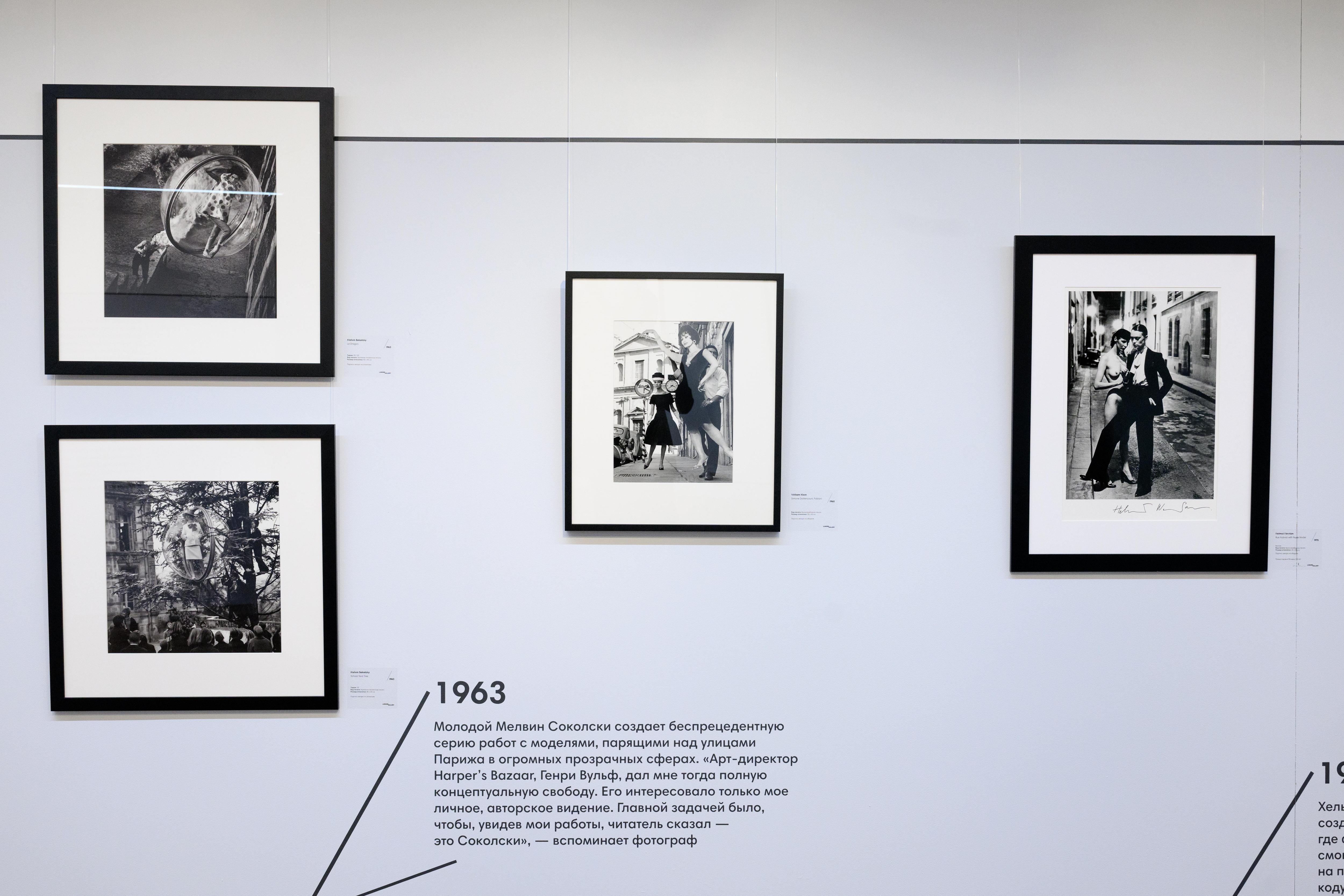 Мелвин Соколски создает эффектные композиции для Harper’s Bazaar, отправляя моделей в нарядах haute couture в путешествие над Парижем внутри масштабного плексигласового шара; Норман Паркинсон запечатлевает сцену с моделью Вендой Паркинсон, забравшейся на страуса в Южной Африке, или фиксирует живой и искренний момент на пляже Тобаго для обложки британского Vogue 1957 года; Ормонд Джильи создает культовый кадр с 43 моделями, позирующими в окнах дома напротив его студии на Манхэттене.