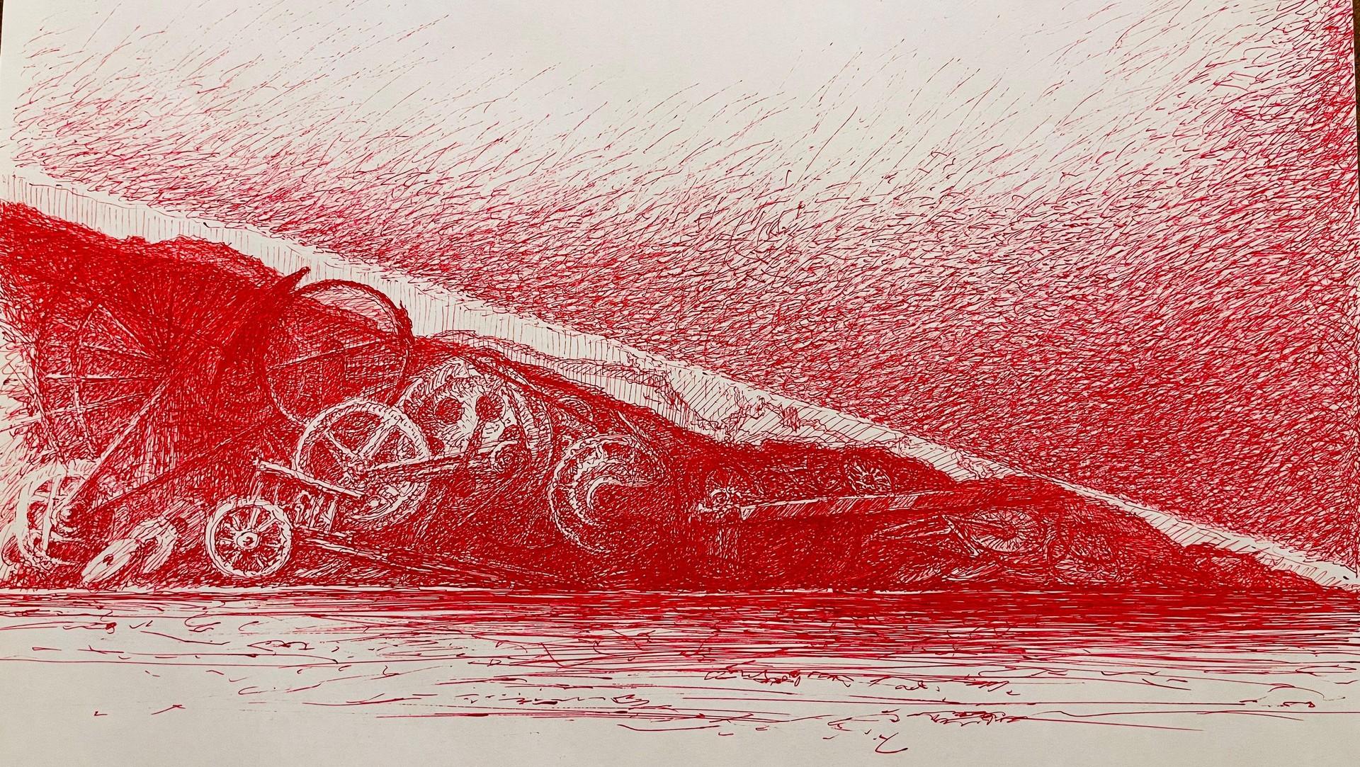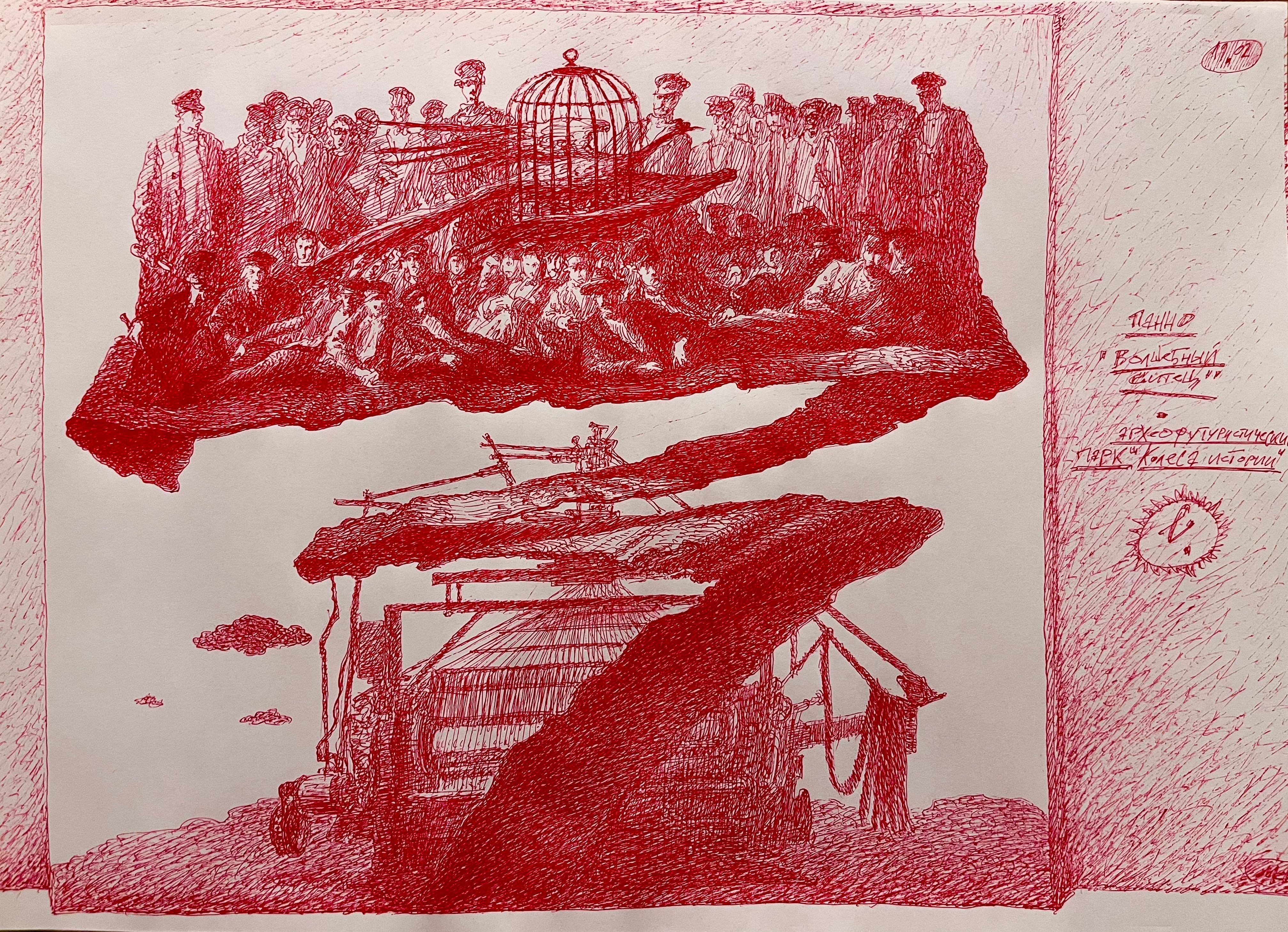 В проекте Егор Кошелев оттолкнулся от советского живописного панно, посвященного революционной истории Иванова, где события воспринимаются отстраненно как нечто завершенное и удаленное во времени. По мнению художника, это и есть колесо истории, которое «буксует» и крутится.