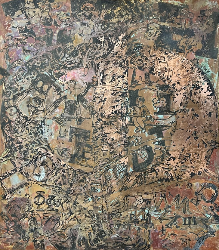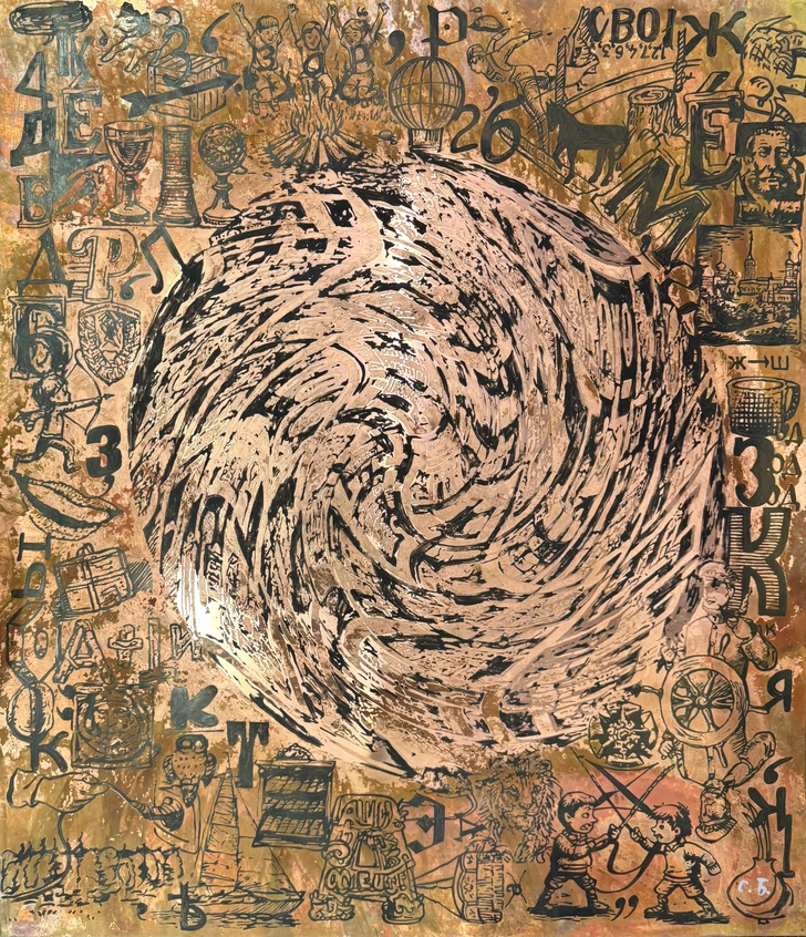 Свои «Ребусы» Сергей Бугаев-Африка создавал в 1990-х и в 2020-х — в переломные исторические годы. Как мы знаем, обычно ребусы подразумевают единственно верный ответ: за картинкой или знаком стоит конкретное значение и смысл. Таким ребусом была и советская идеология: с «разрешенными» и «единственно верными» трактовками и общим языковым кодом. Но работы художника — не просто игра, а философский разговор о природе сознания, археология психики и языка. И да, правильного ответа здесь нет и быть не должно, об этом говорят и названия — например, «Четверичный неразгаданный ребус».
