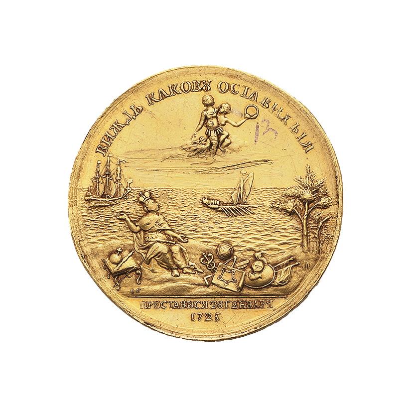 Памятная медаль на смерть императора Петра I 28 января 1725 года. Московский монетный двор, 1725