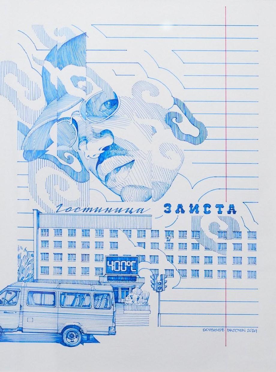 Southside Grooven. «Сүл хоңх» (Последний звонок). 2025. Бумага, линеры.