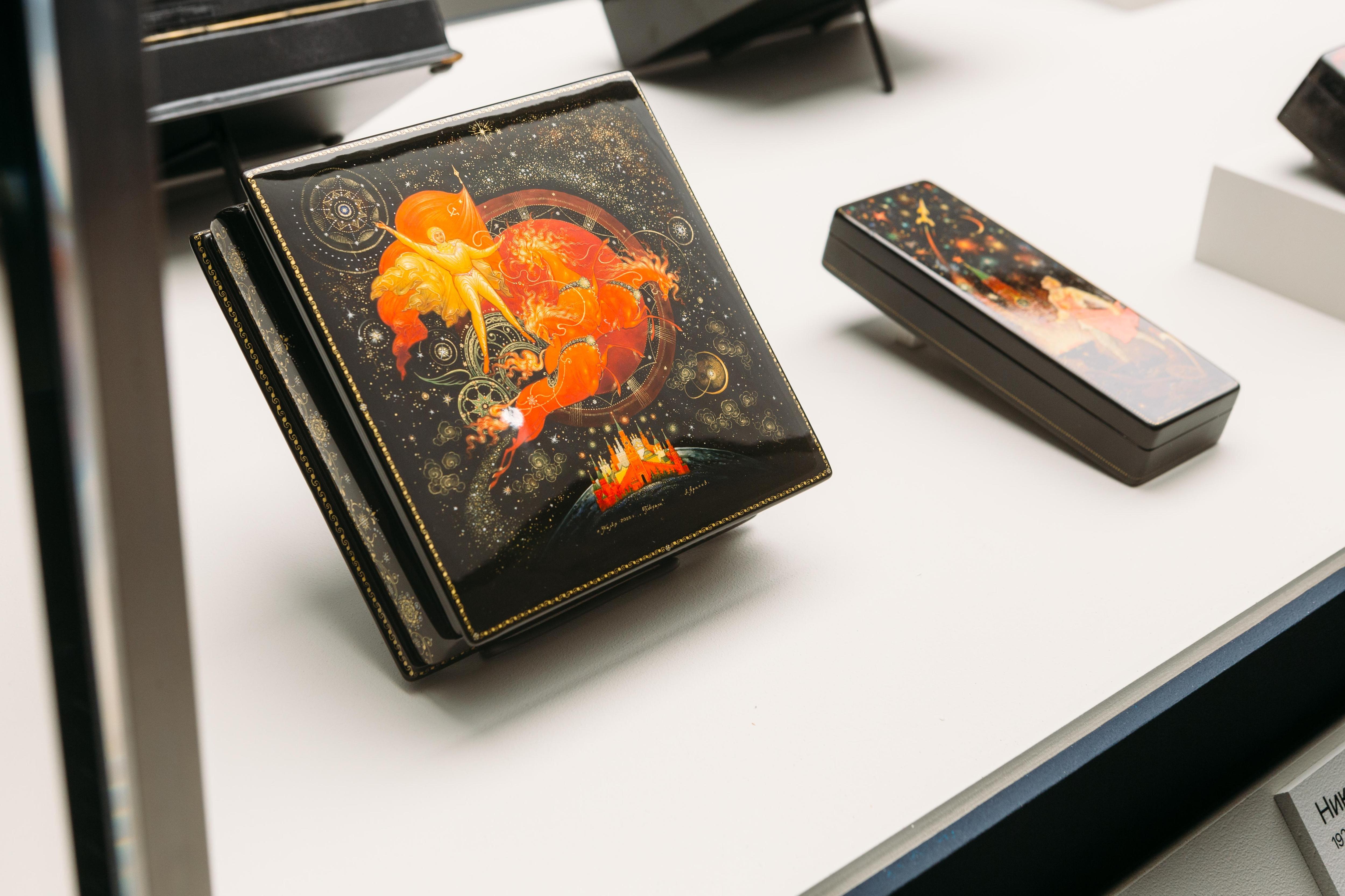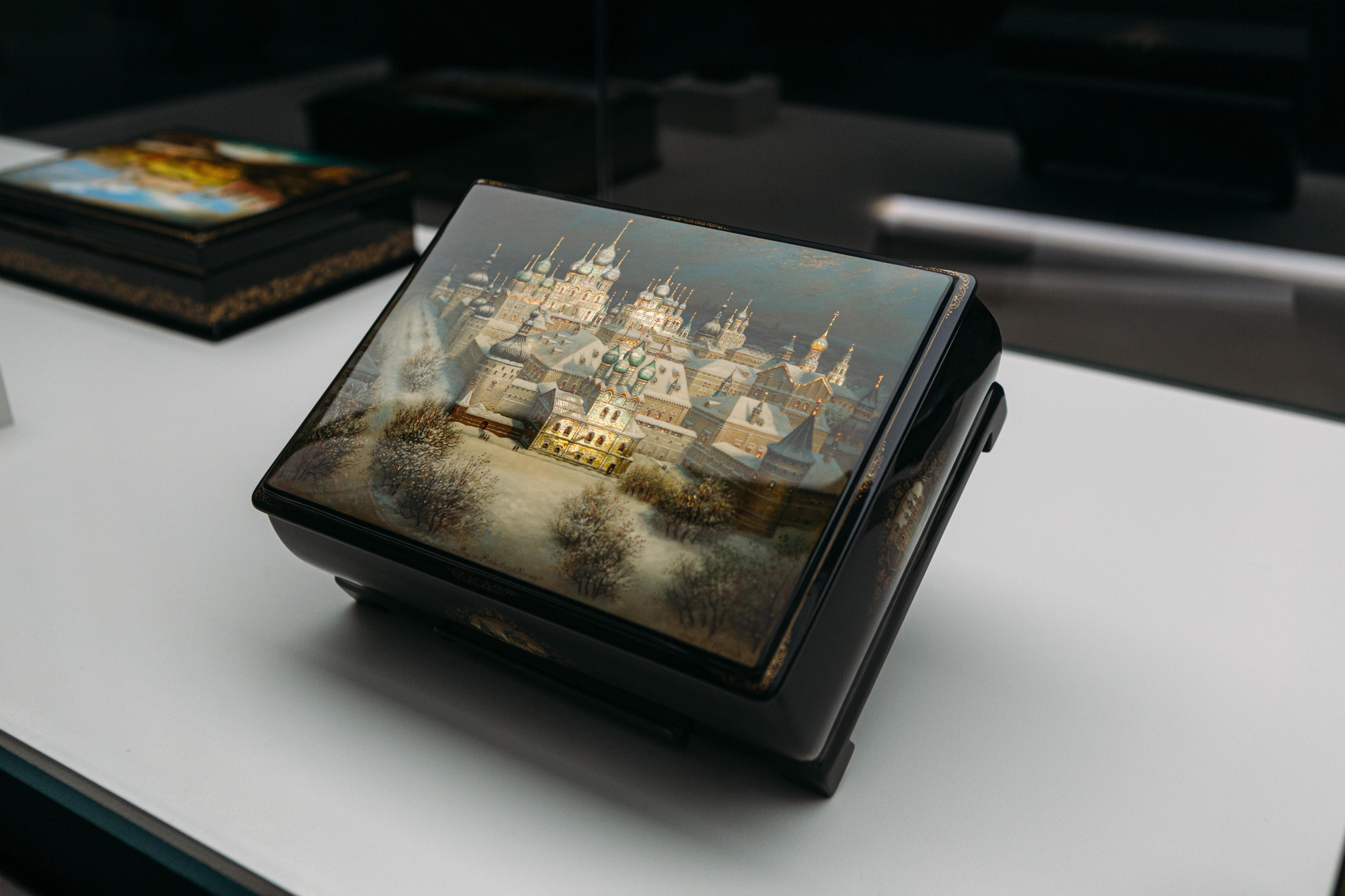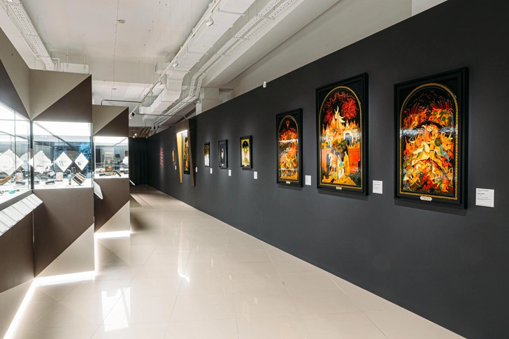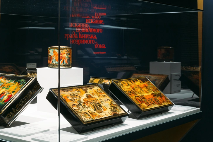 В трех залах музея «Новый Иерусалим» собраны шедевры этих художественных центров. Экспозиция не только показывает мастерство и разнообразие техник, но и рассказывает историю становления этих школ, родившихся из русской иконописной традиции, и их отличия.