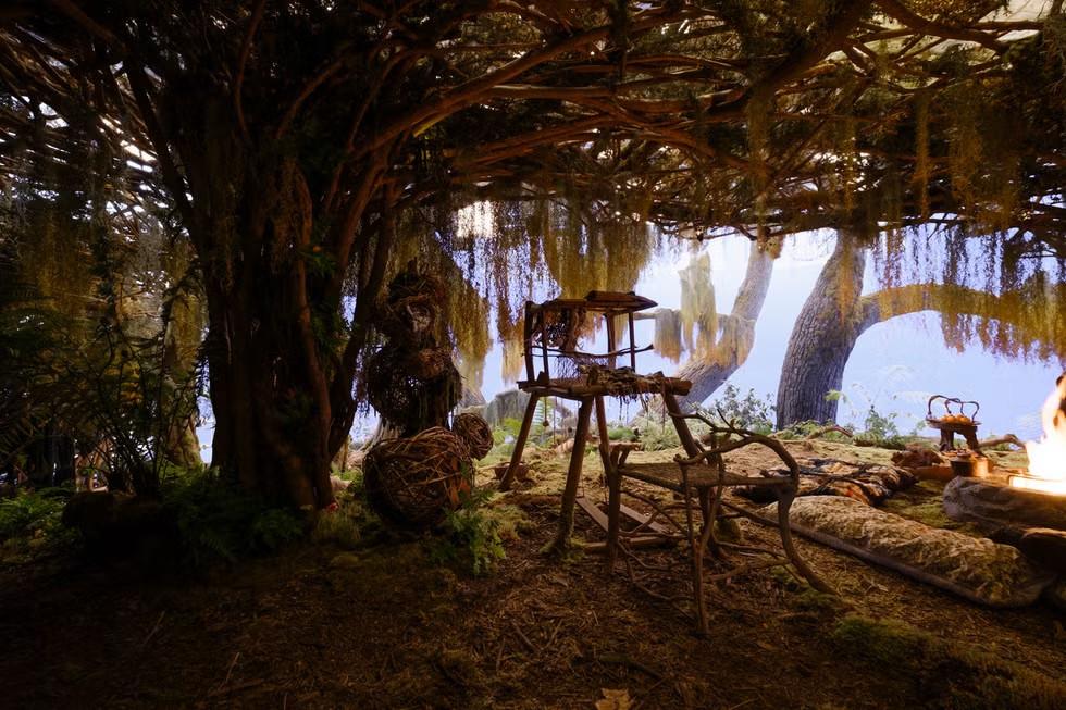 Чтобы создать по-настоящему органичную структуру, команда восемь недель вручную сплетала его из гибких деревянных материалов, позволяя форме рождаться естественно. Для создания эффекта проникающего сквозь листву света изготовили сотни силиконовых листьев с аккуратно прорисованными прожилками.
