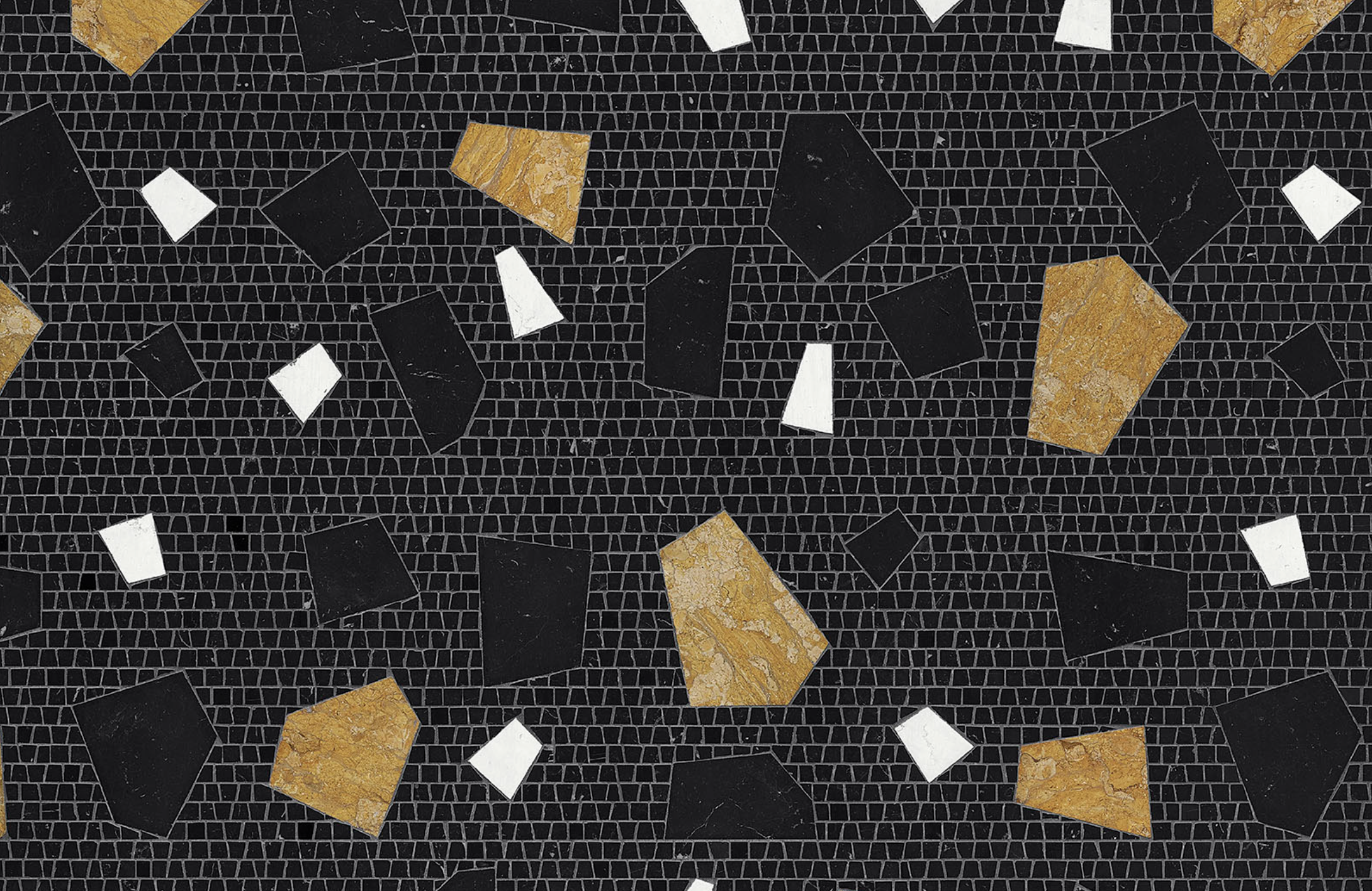 Мраморная мозаика Écho украшена тессерами из 24-каратного золота, которые придают поверхности благородное мерцание. Оттенки Aube («Рассвет») и Brume («Туман») напоминают волны, мерцающие в летнем море утром и вечером.