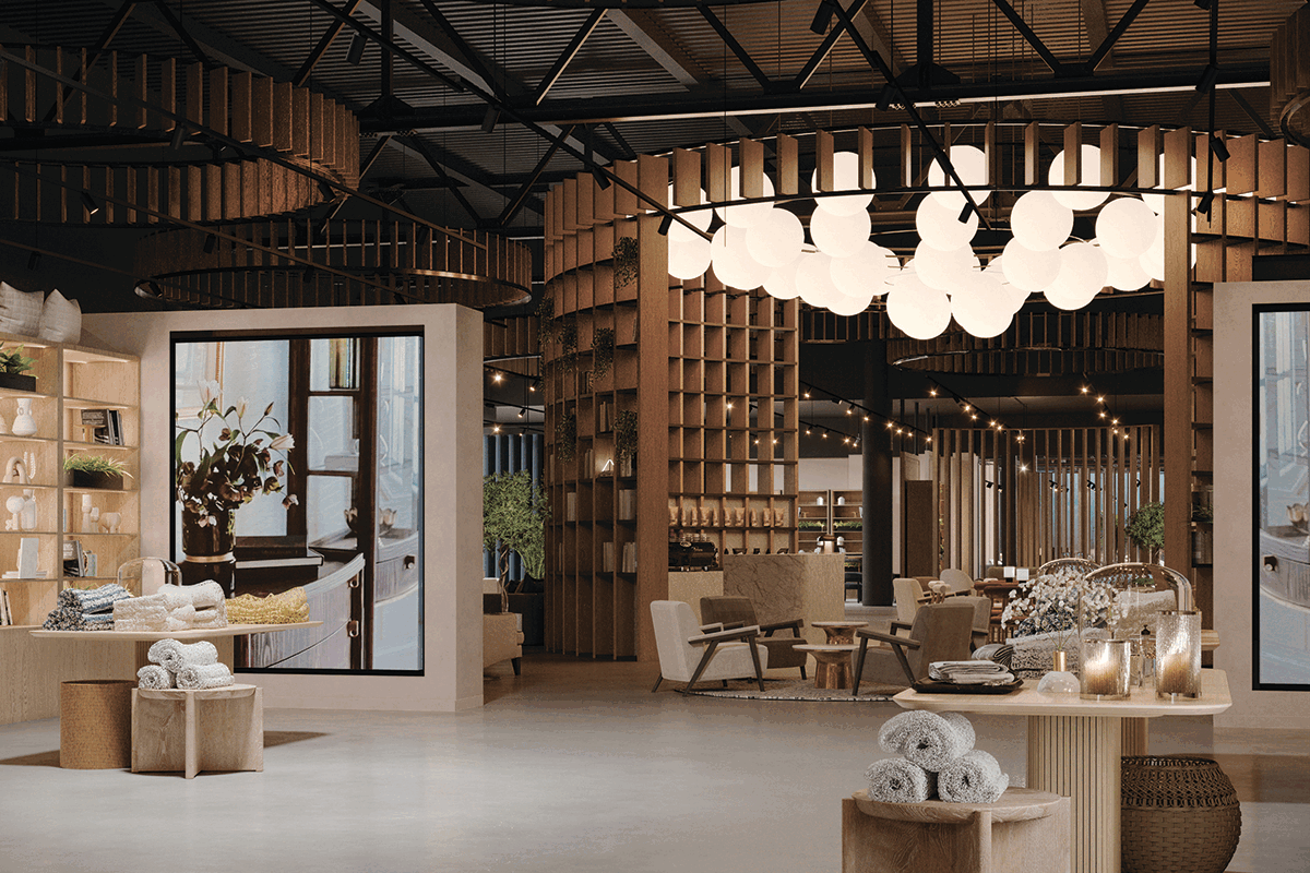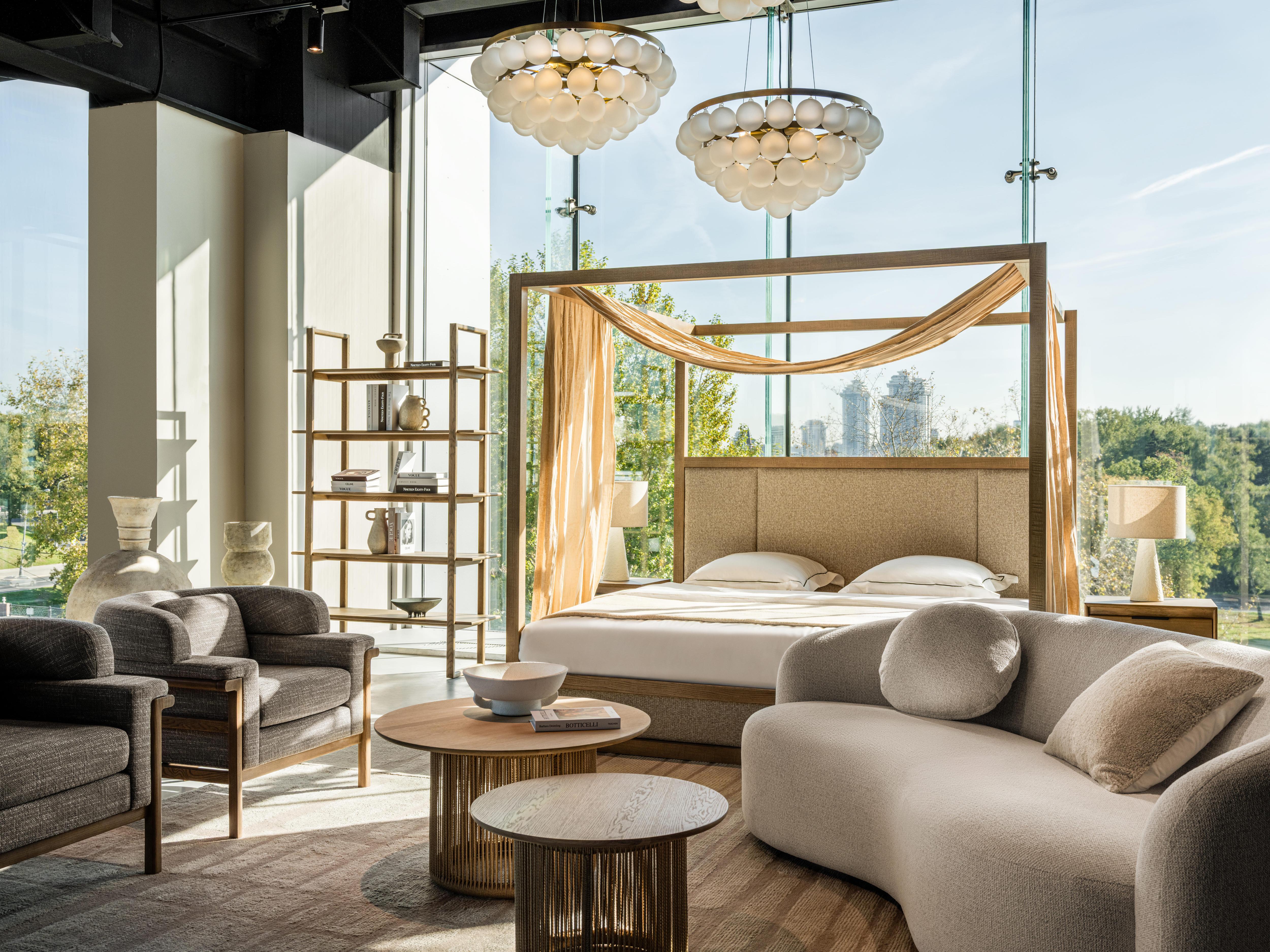 Пространство площадью 3000 кв. м заняло четвертый этаж и стало новым этапом в развитии компании — здесь есть, что нужно для обстановки всего дома, а гости могут получить иммерсивный опыт. Вместо рядов с мебелью воссозданы настоящие комнаты: здесь можно провести время в уютной гостиной, оценить удобство рабочего кабинета или представить себя на просторной кухне. Такой подход позволяет гостям почувствовать атмосферу будущего дома и сделать осознанный выбор.