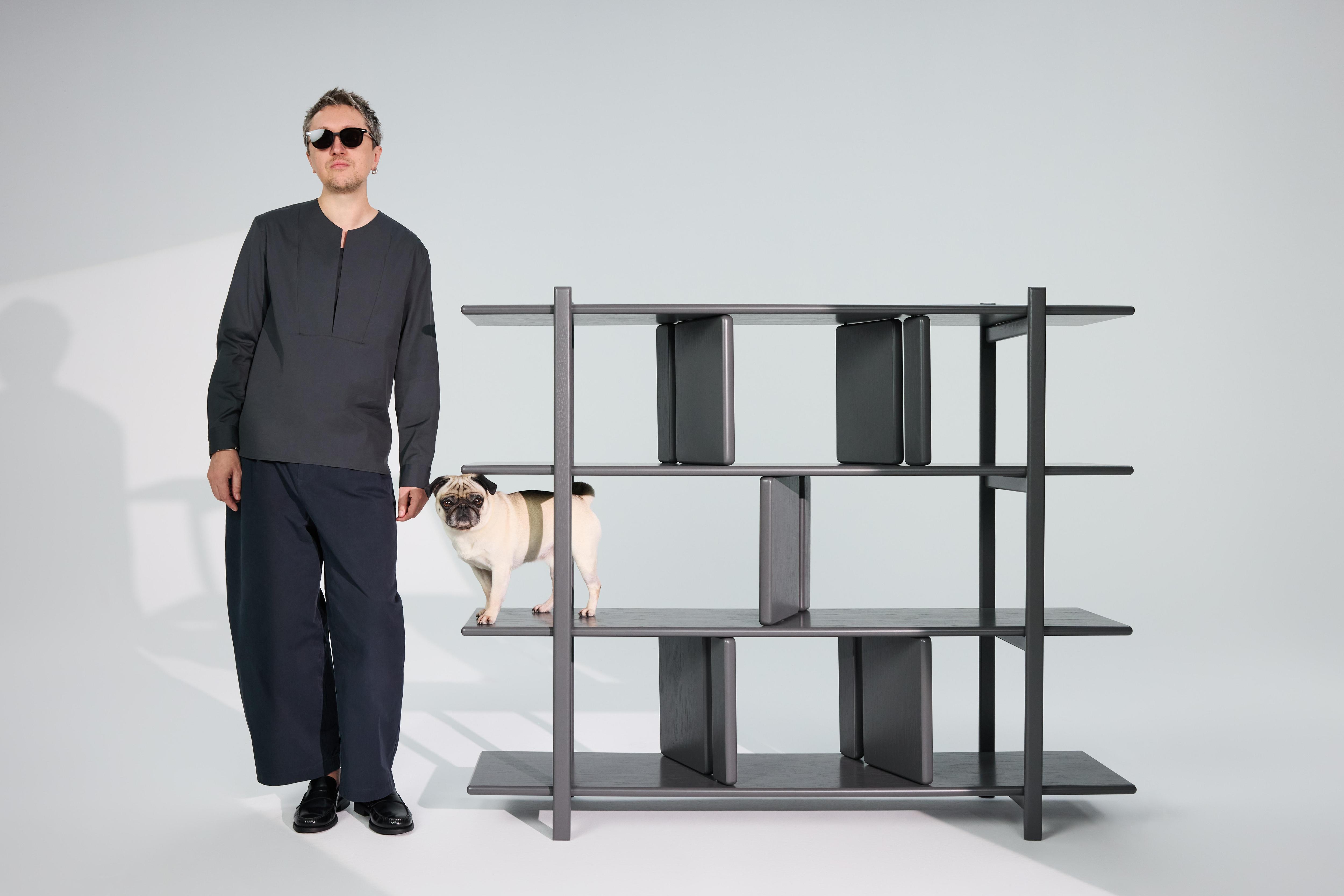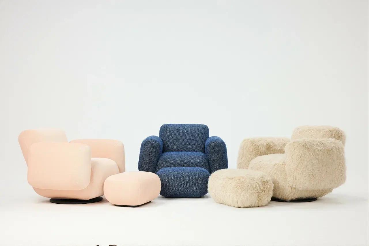 В коллекцию входит серия предметов. В их числе — кресло с вращением на 360°, модульные стеллажи, стеклянные тумбы и графичные ковры. Каждый из объектов — со своим характером, но их объединяет общая эстетика.