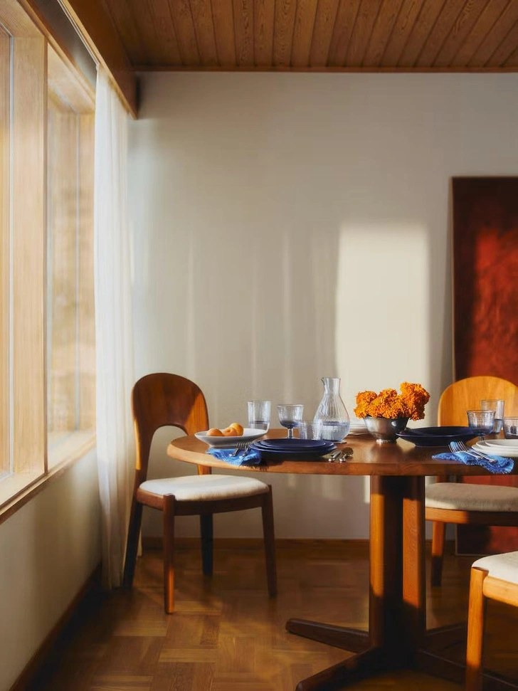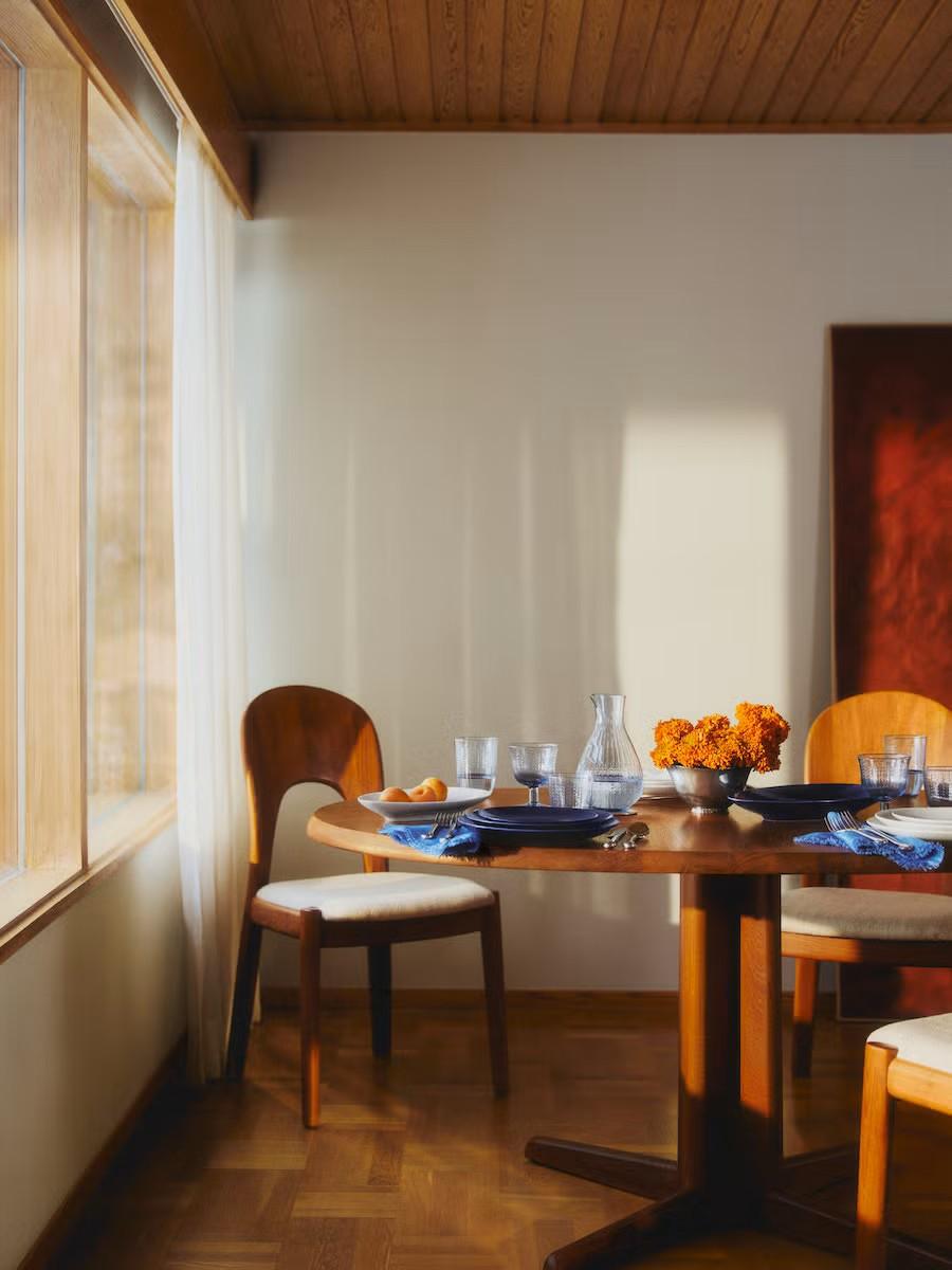 Раньше только сервировочные предметы — кувшины, миски, подносы — были синими, а основные тарелки оставались белыми. Теперь же коллекция получила полноценную синюю версию, включая тарелки для еды. Их легко узнать по рельефному узору и асимметричным формам.