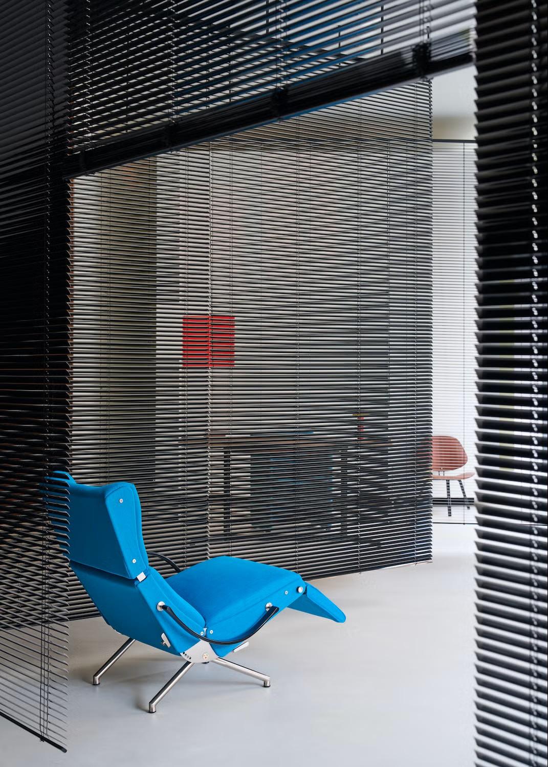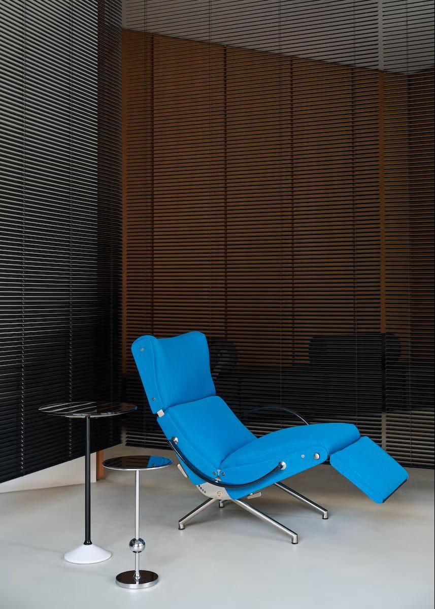 Шезлонг P40, спроектированный Освальдо Борсани (Osvaldo Borsani), не снимали с производства с 1956 года. Это уникальный предмет, который может принимать до 486 положений благодаря сложной системе наклона. Металлический пьедестал держит сиденье и спинку, под сиденьем прячется выдвижная подставка для ног, а подголовник регулируется.