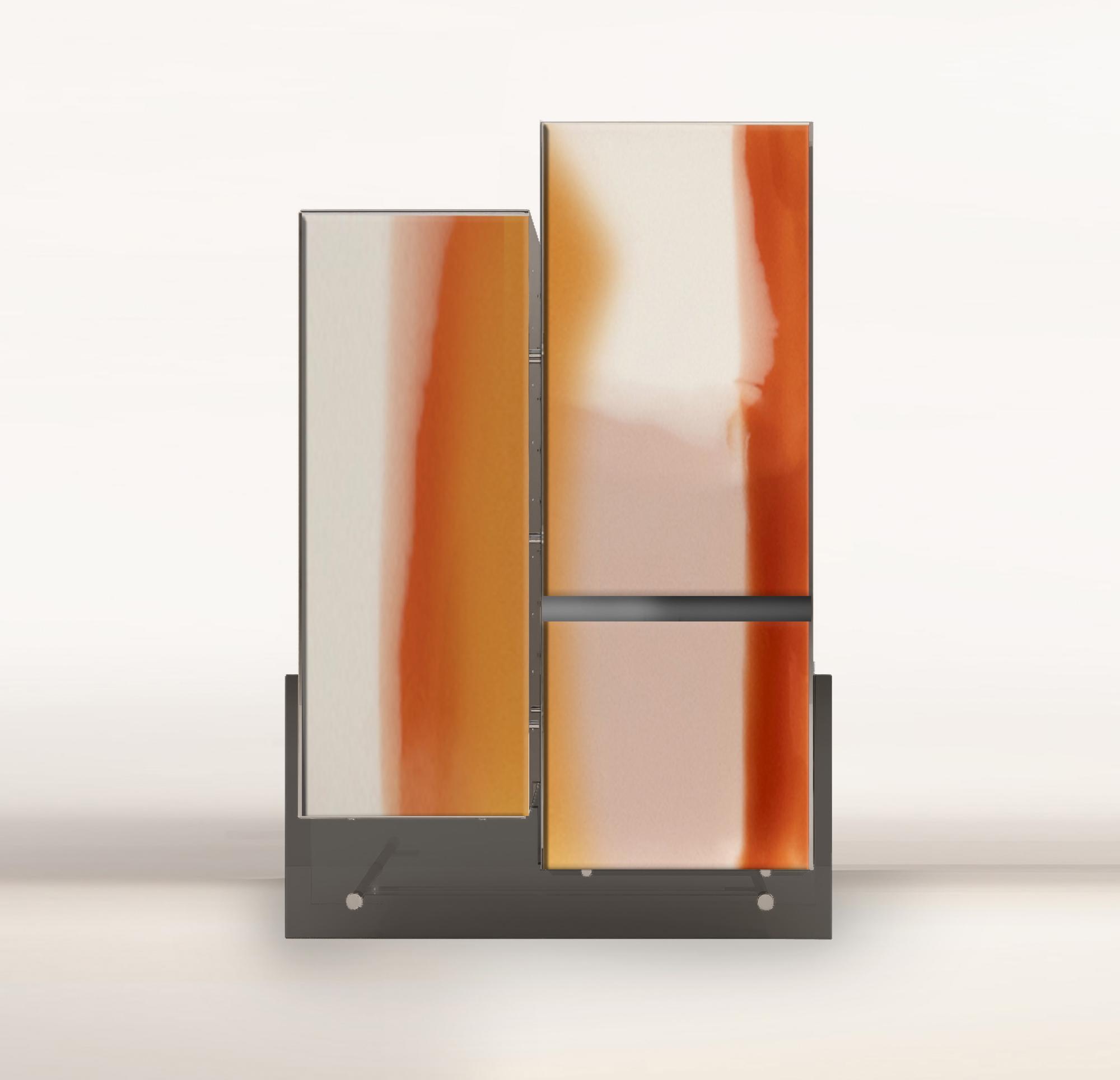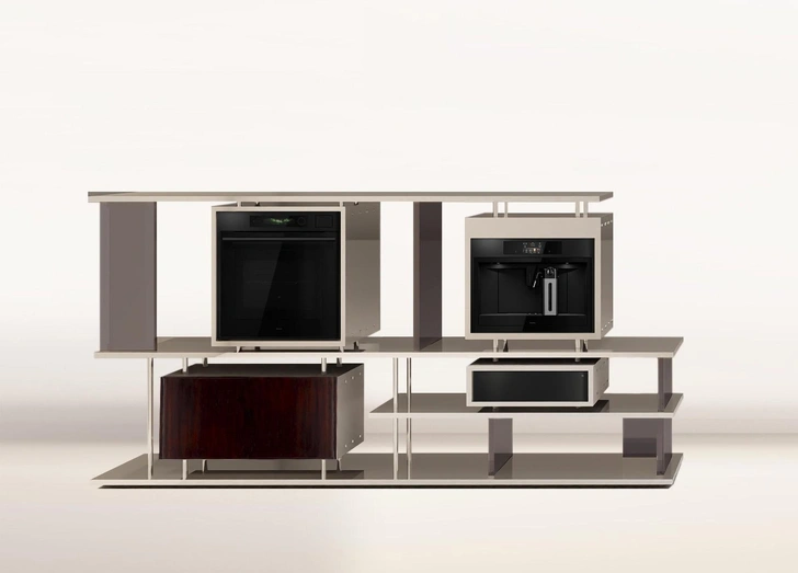 Главным предметом стала система Allover — в нее встраивается бытовая техника Asko. Она напоминает арт-объект: фасады будто написаны акварелью, и прочность смолы и металла их нисколько не утяжеляет.