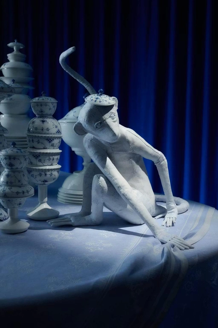 Для Мартины Майруп, скульптора и текстильного художника, рождественская сервировка — олицетворение детского предвкушения праздника, полного радости и некоторого хаоса. Она создала текстильные скульптуры обезьянок, окруженных фарфоровыми башнями. Обычно Мартина Майруп работает со вторичным текстилем, но в этот раз сделала обезьян из скатертей из новой текстильной коллекции Royal Copenhagen.