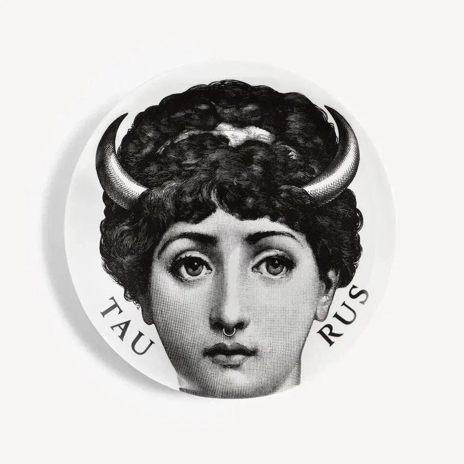 Серия Zodiaco из двенадцати тарелок Tema e Variazioni до недавнего времени существовала лишь в виде рисунка. Однако Барнаба Форназетти, продолживший развивать проект отца, воплотил замысел в фарфоре, доказав актуальность идей дома Fornasetti и непреходящую силу его музы — Лины Кавальери.