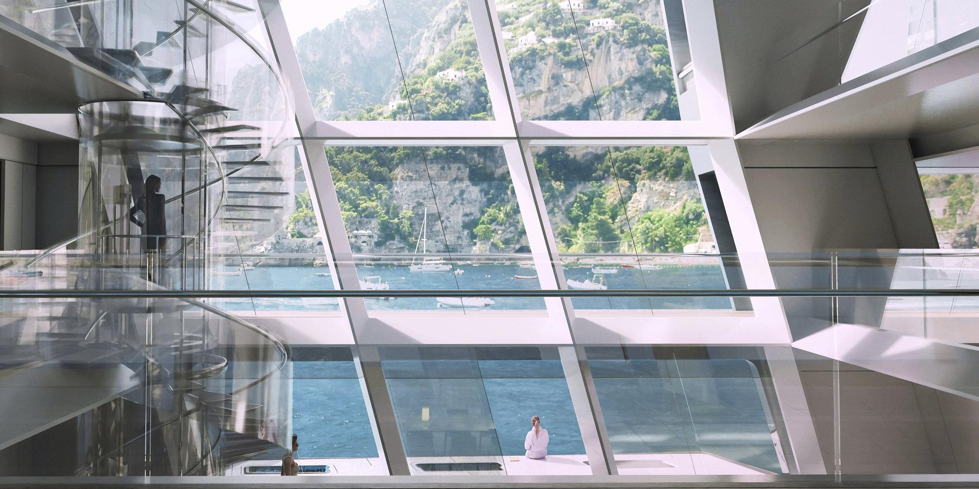 По периметру яхты предусмотрены широкие дорожки, где гости могут заниматься спортом или принимать солнечные ванны. Интерьеры выполнены в светлых тонах: используются нежные пастельные ткани, дерево и полированный камень. Дополняет декор стеклянная винтовая лестница во внутреннем атриуме. При небольшой длине (88 метров) водоизмещение яхты 2000 т., что позволяет ее использовать как для длительных путешествий, так и для полноценных научных экспедиций.