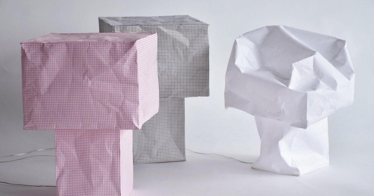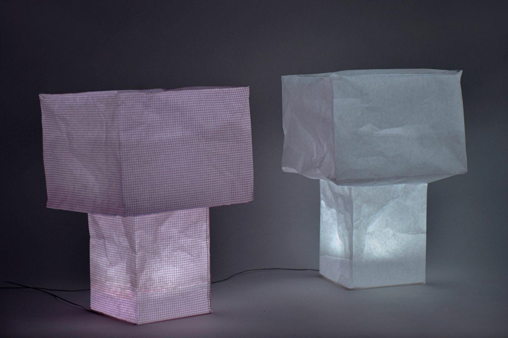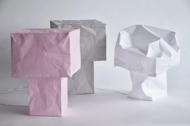 Плоский светодиодный светильник, встроенный в основание, освещает «чехол», усиливая тени в складках материала. Лампа сделана из трехслойной смеси бумаги и пластика толщиной около 0,2 миллиметра. «Поскольку слой пластика зажат внутри, бумага очень прочная и не рвется даже после многократного складывания и разворачивания», — рассказывает дизайнер.