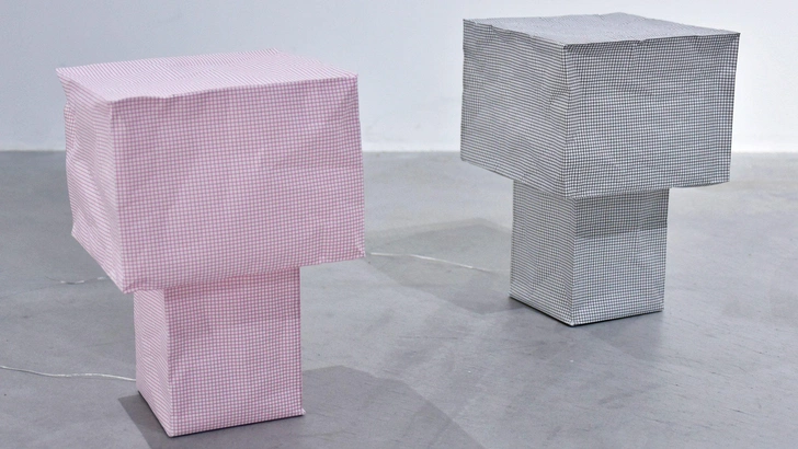 Форма светильника напоминает обычные лампы, состоящие из тонкого основания, увенчанного блочным абажуром. Модель производится в трех расцветках — простой белой, а также в черную и розовую клеточку. В продаже эта лампа еще не появилась.