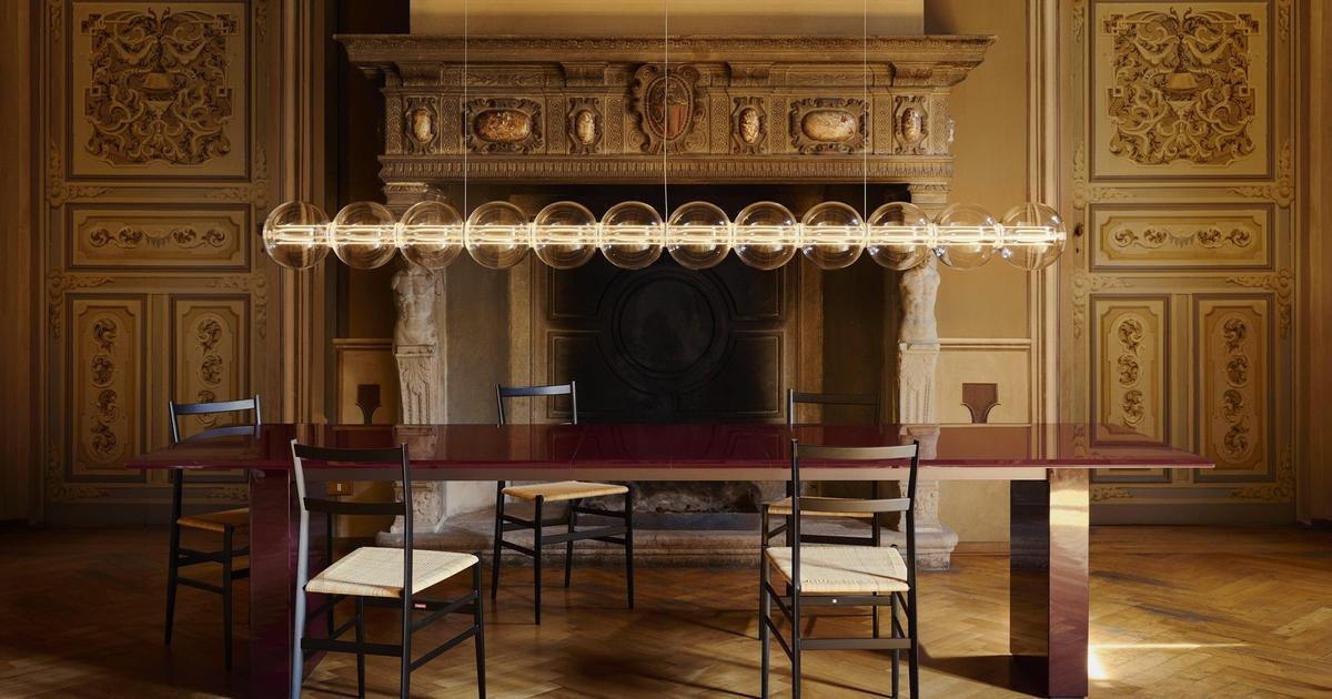 С помощью такой конструкции дизайнер стремился выразить мимолетное мгновение и показать, что прекрасное можно найти в простых вещах. Светильник существует в трех вариантах длины, приблизительно от 1,5 до 2,5 метров — он может хорошо вписаться как в просторные столовые в домах и гостиницах, так и в музейные пространства или любые архитектурные проекты.