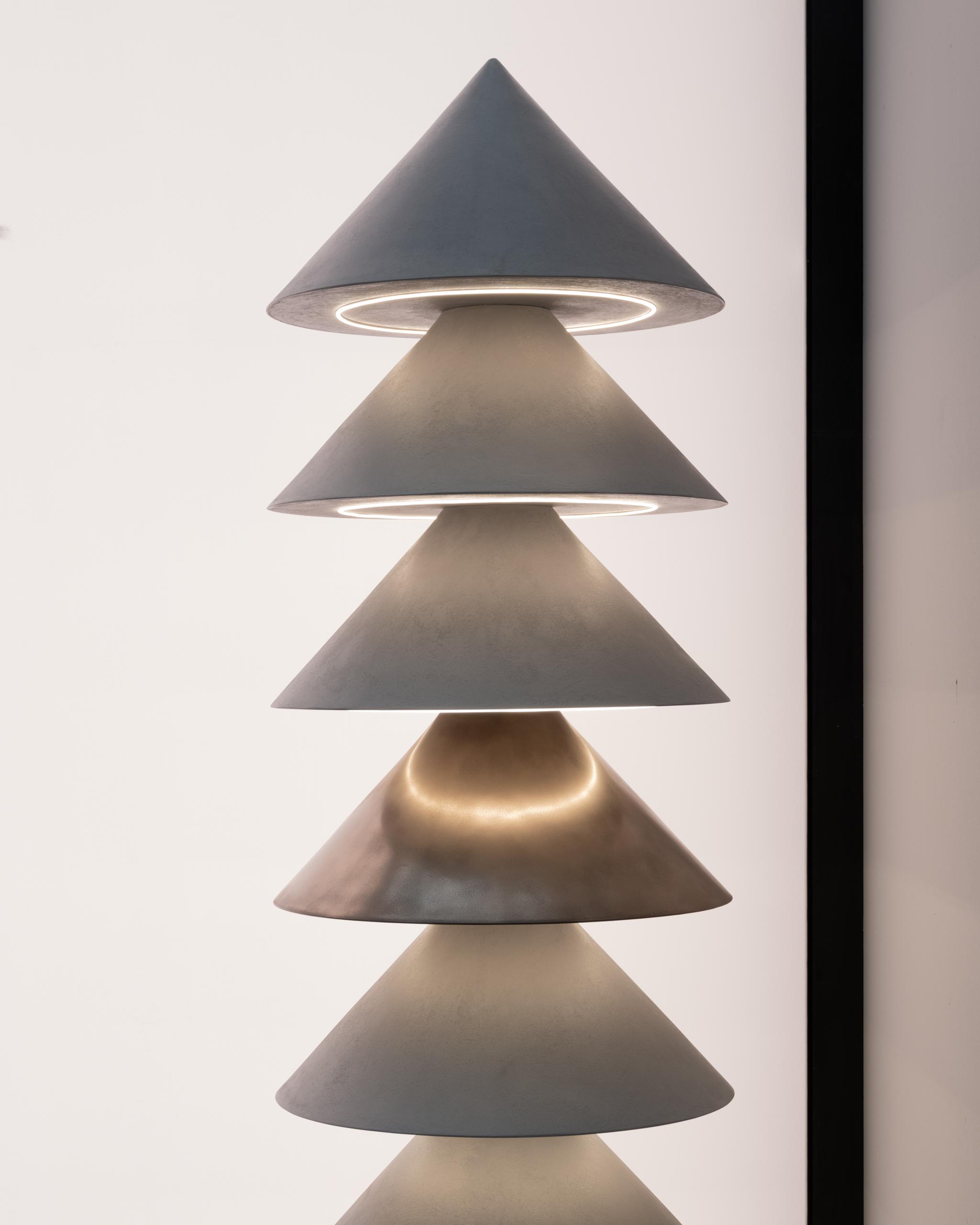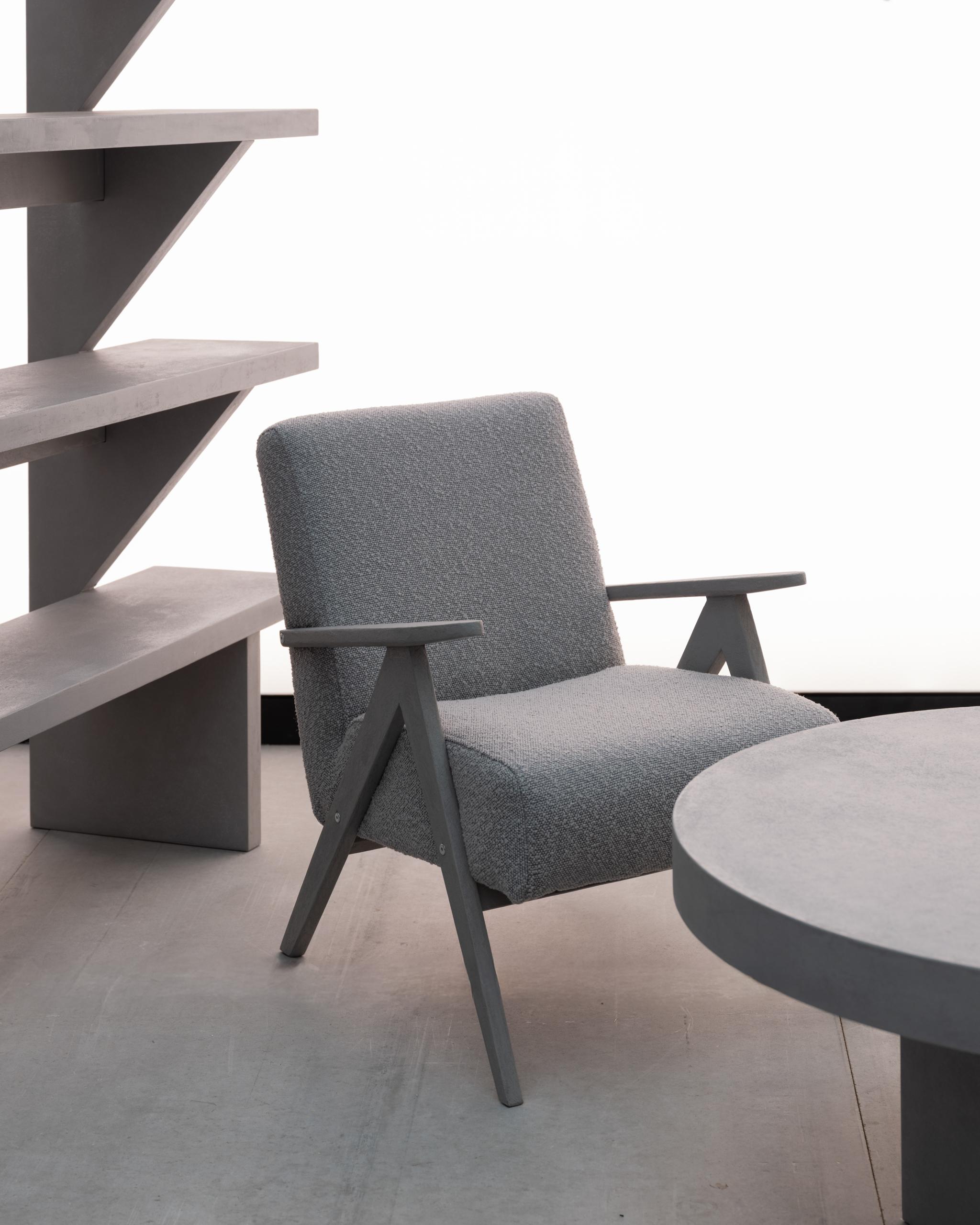 В коллекцию мебели «Уют» архитектурного бюро Le Atelier вошли журнальный стол, книжный стеллаж и скульптурный светильник. Предметы изготовлены из массивной фанеры и покрыты микробетоном. Благодаря этому их поверхность тактильно и визуально напоминает настоящий бетон.