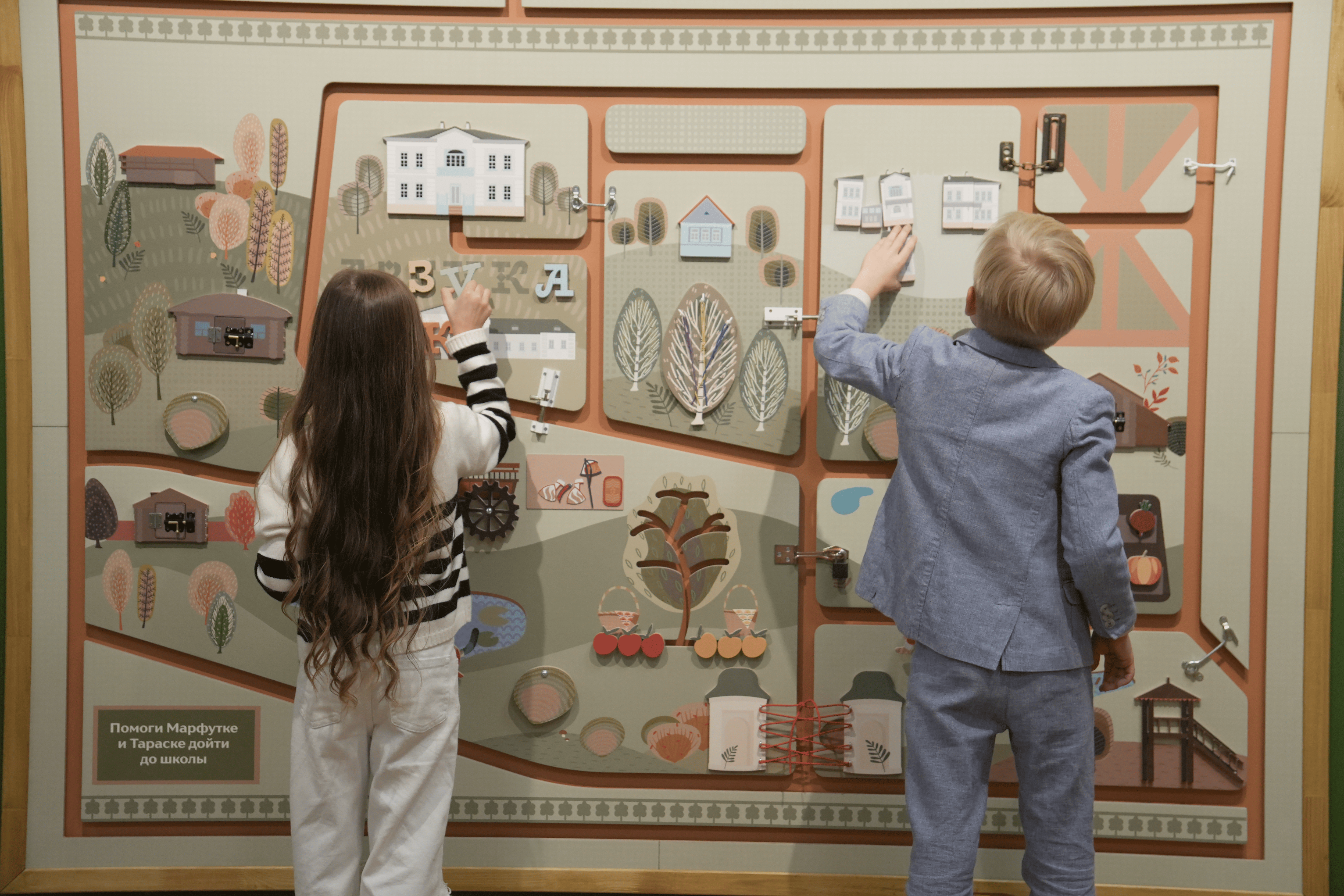 Подход к сценографии в целом и решения экспозиции в частности раскрывают эти сюжетные линии. Интерактивная книга городских строений, отражающая регулярность планировки и типичность фасадов, первая земская почта и возможность «пообщаться» с земским почтальоном, звонок государственным деятелям и писателям с целью «обсудить» земство. Все эти и многие другие, казалось бы, «игровые объекты» — часть большой проделанной работы по аккумулированию и репрезентации знаний о земстве.