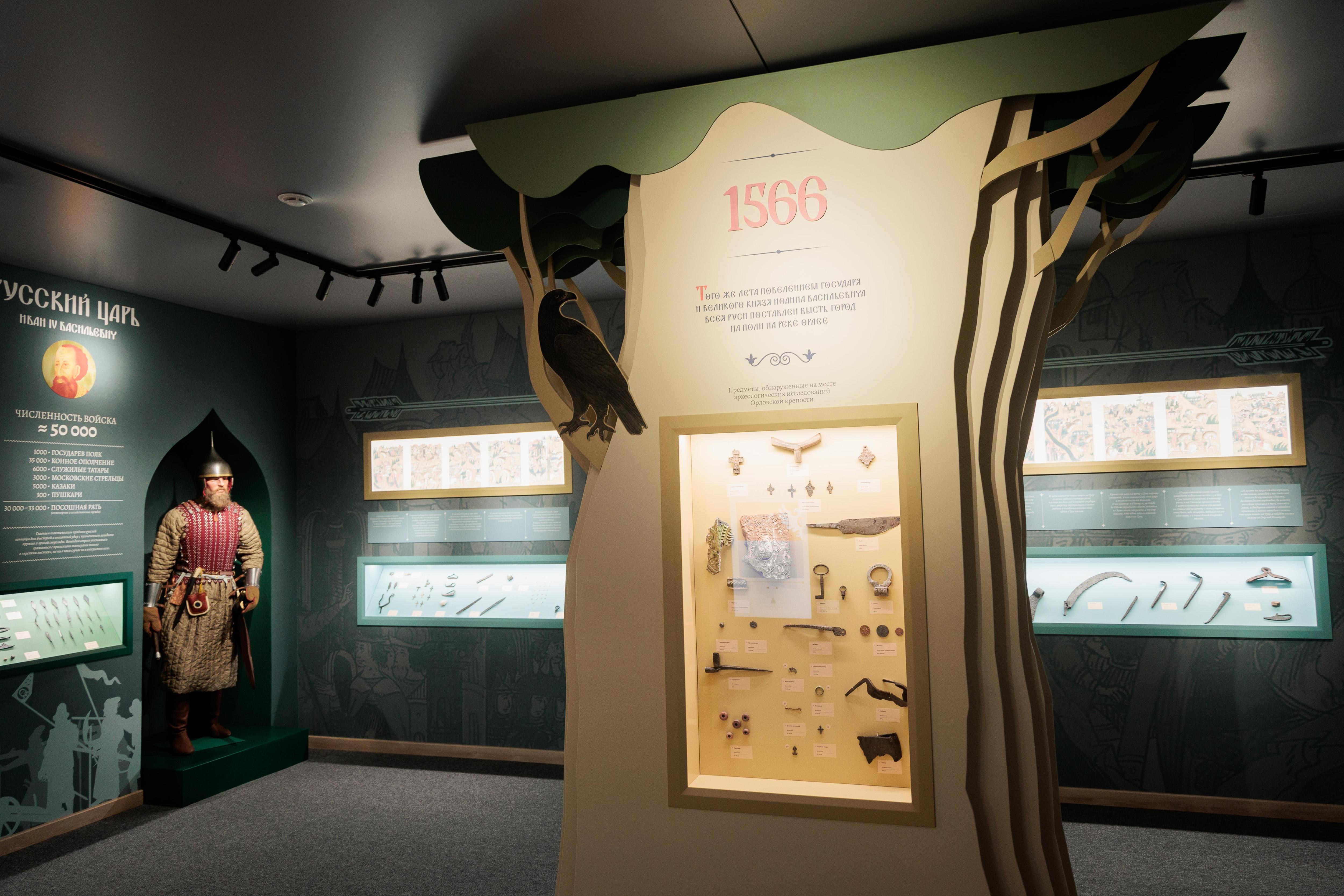 Завершает экспозицию раздел об основании города Орел, как одной из оборонительных крепостей Большой засечной черты. Таким образом посетитель понимает, что одно сражение из летописей повлияло на формирование истории Государства Российского.