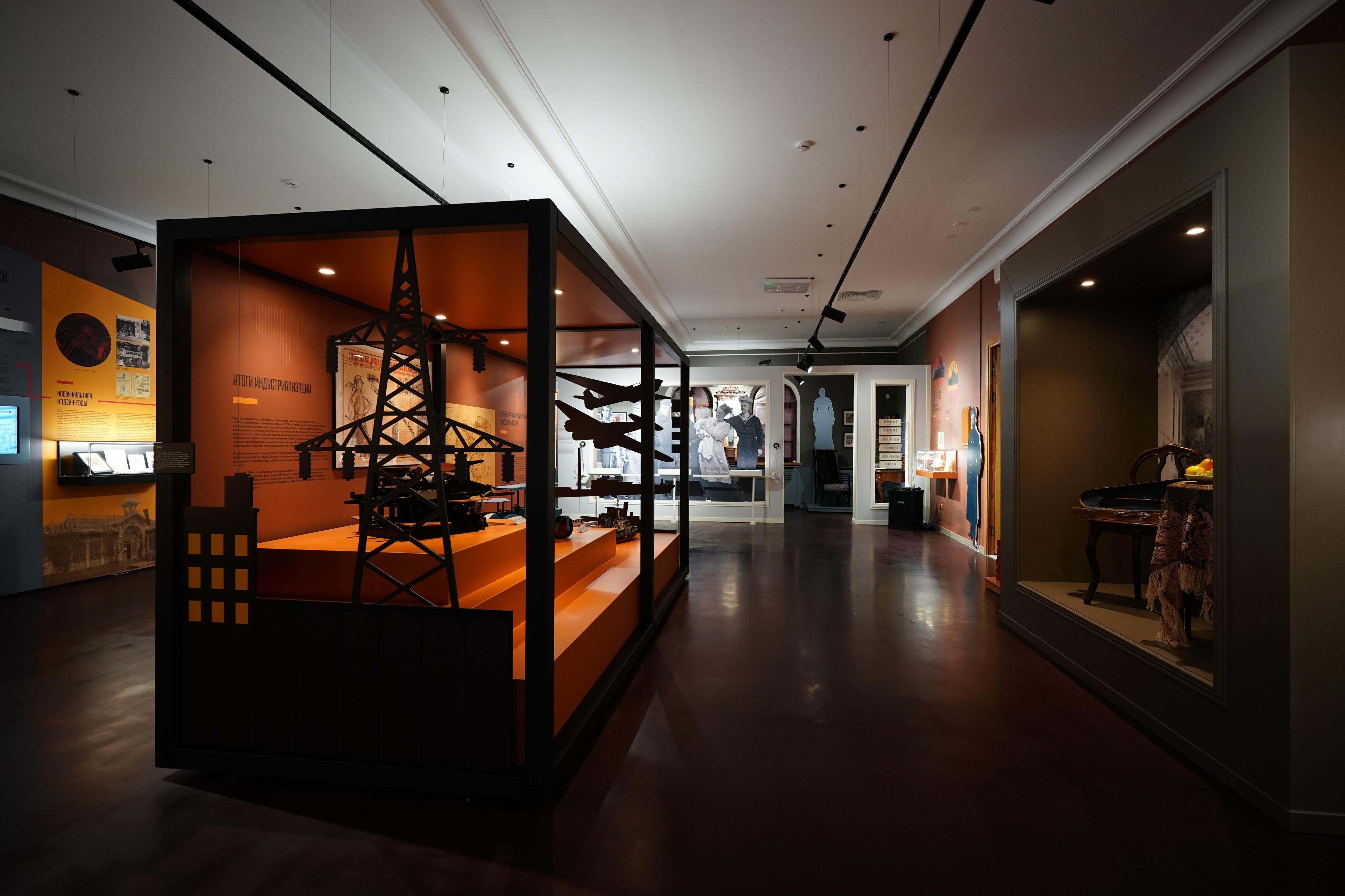 При проектировании экспозиции «Рыбинск в XX веке» задействована идея рассказа о городе через тотальные инсталляции. В каждом периоде одновременно представлен разный исторический масштаб повествования: страна, город, дом и человек. Уровень страны представлен таймлайном значимых событий, города — инсталляциями производственных и общественных объектов, дома — бытовыми предметами, человека — воспоминаниями людей, записанными с помощью аудио- или видео.