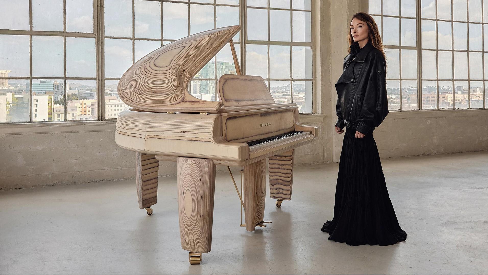 Келли Уэстлер (Kelly Wearstler) работает в мире интерьеров уже много лет, но фортепиано проектирует впервые. Главным вызовом для нее стало «научиться работать с инструментом, а не вокруг него». У фортепиано есть строгие акустические требования: звук нужно защитить, конструкция должна быть жесткой, материалы — соответствующими.