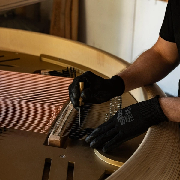 Внутри фортепиано — еловая дека и запатентованная сварная стальная рама. Снаружи инструмент покрыт полупрозрачными составами в шести цветах: verdigris (зеленовато-серый), fawn (светло-бежевый), syrah (насыщенно-винный), dune (песочный), ink (чернильный) и ash (пепельный).