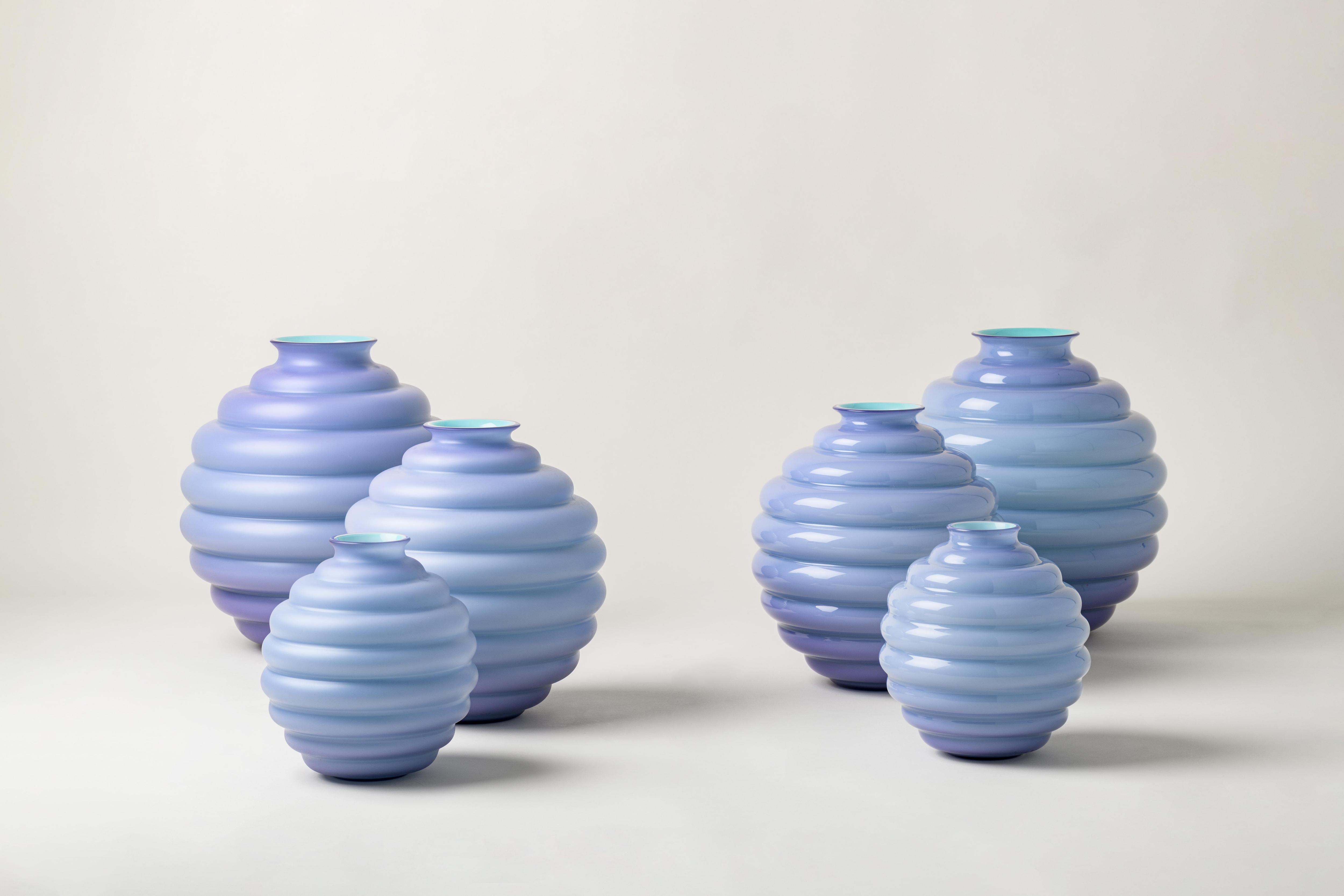 Коллекция Lilla Menta вдохновлена венецианскими пейзажами. Выполненные из муранского стекла, изделия сочетают в себе сиреневый, голубой, синий, мятный и лиловый. Нежные градиенты имитируют блики на воде, а плавные формы олицетворяют спокойствие и единение со стихией.
