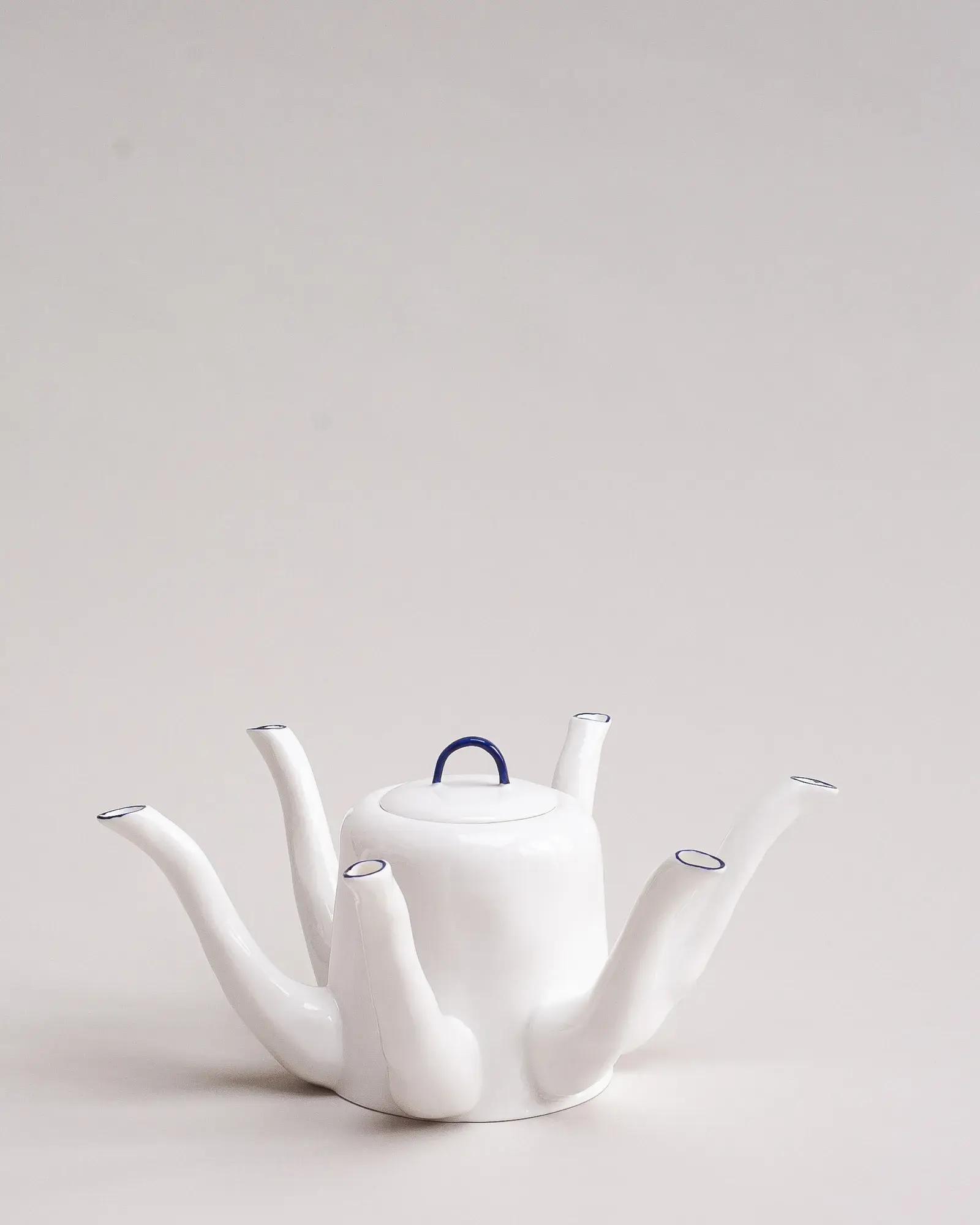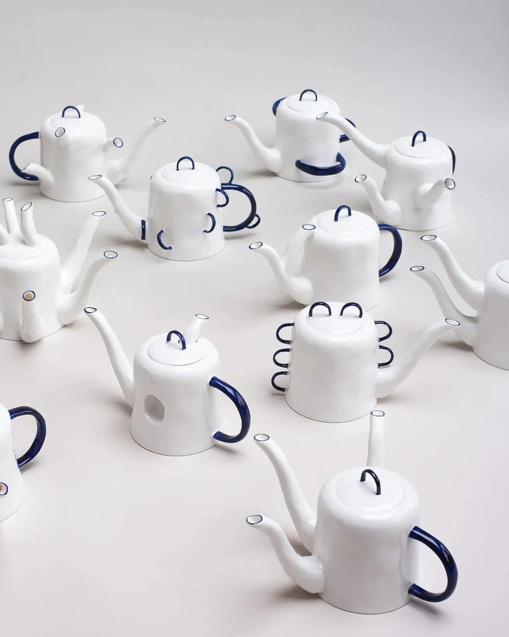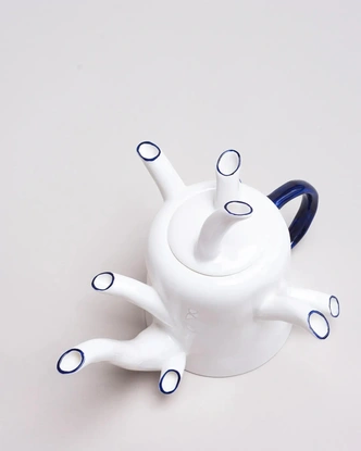 Коллекция сюрреалистических чайников Feldspar продолжает эти исследования. Каждый из предметов имеет оригинальную форму: у некоторых — несколько носиков, другие покрыты многочисленными ручками кобальтово-синего цвета.