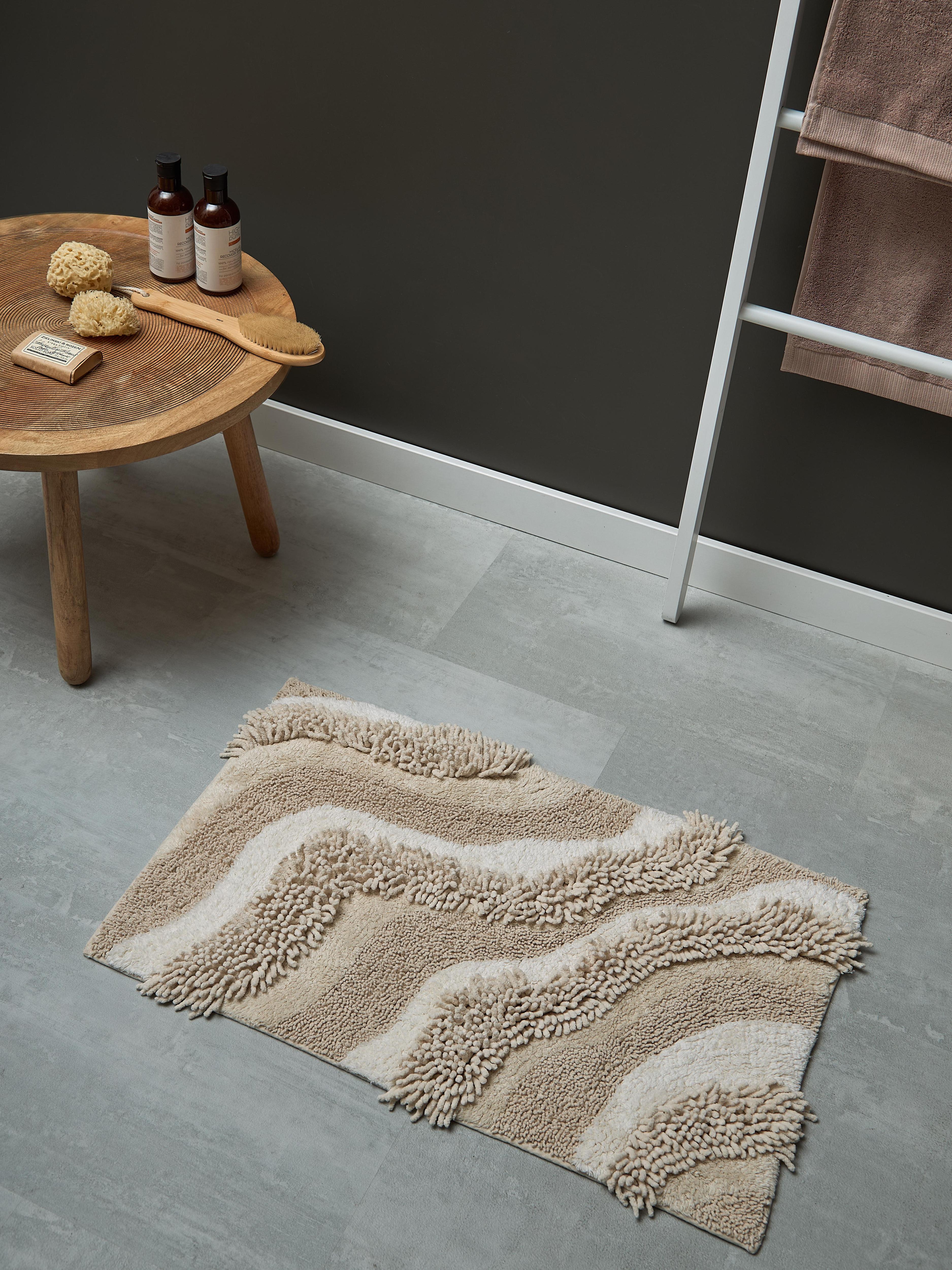 В ванной серии появились коврики с характерным волнистым краем, напоминающим раковины морских гребешков. Они представлены в двух оттенках: оливковом и терракотовом. А линейка Ethnic пополнилась моделями с абстрактным дизайном и стилизованным ботаническим орнаментом.