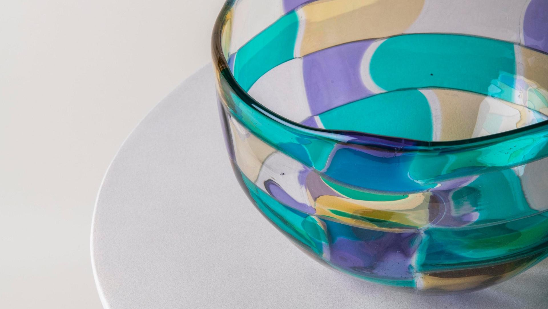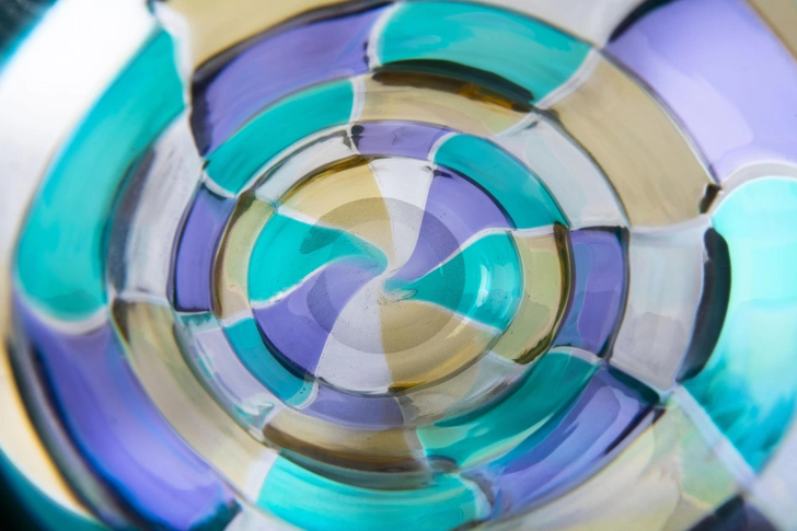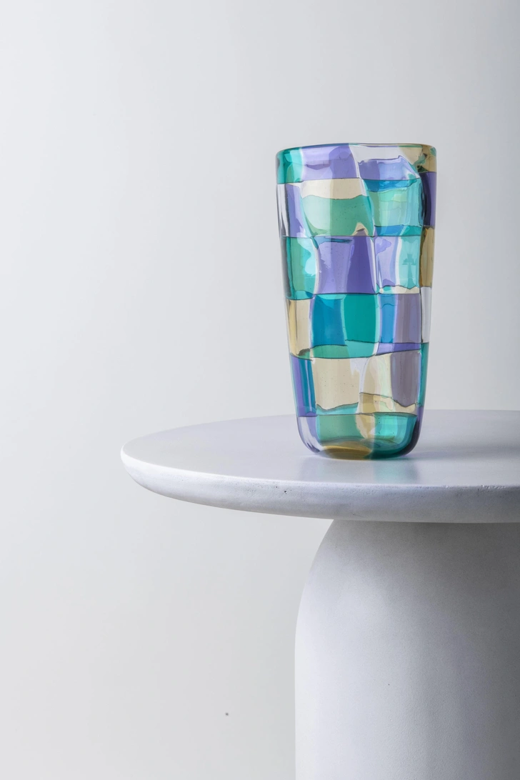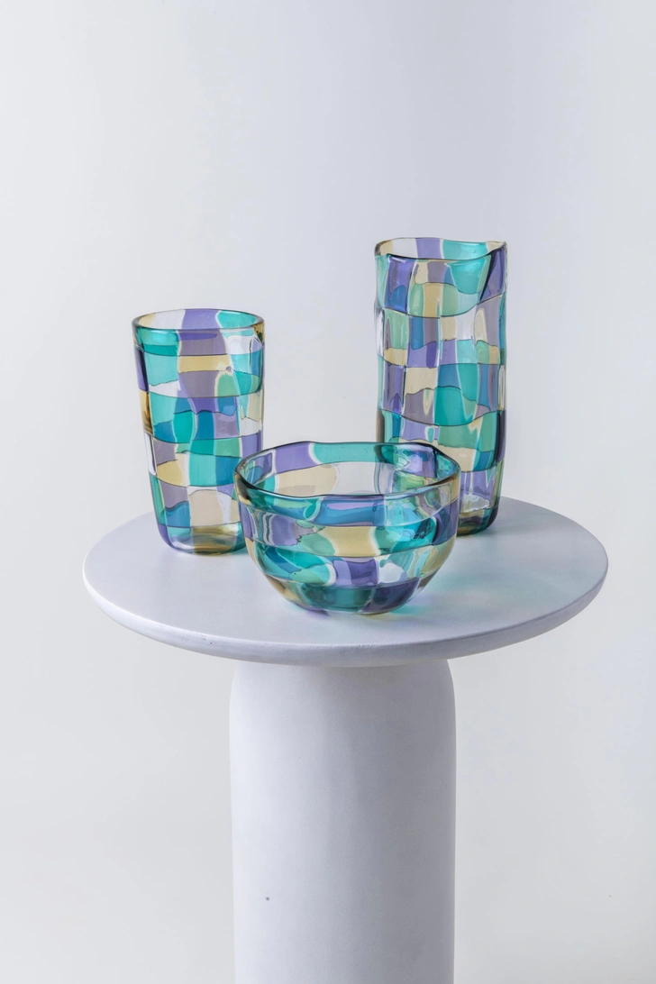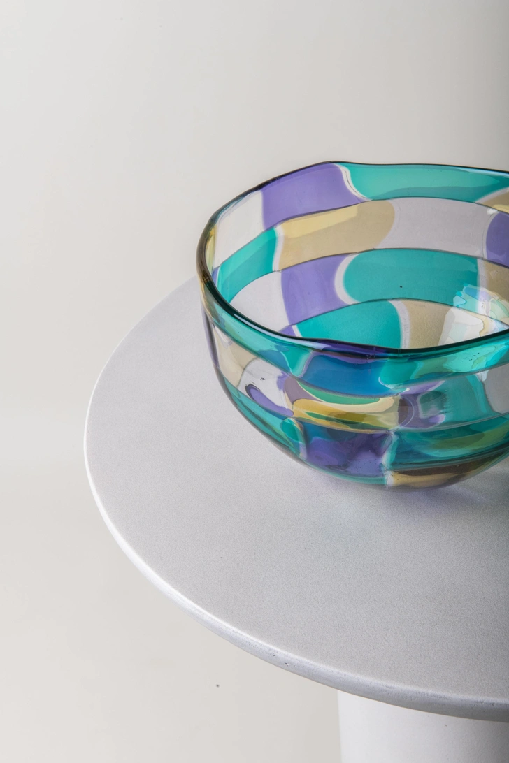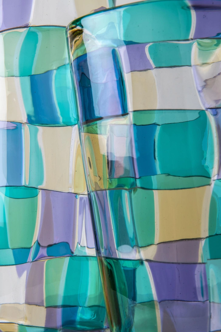 В коллекции Pezzati цветные стеклянные элементы сливаются в ритмичные узоры. Эта мозаика из ярких плиток была революционной для своего времени. С тех пор нестандартные формы и плавные линии изделий стали синонимом смелого творческого духа Venini.