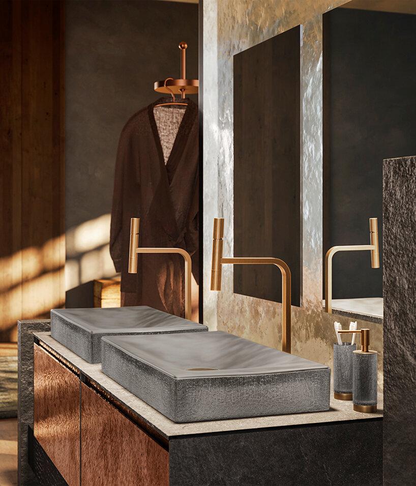 В новой коллекции Incastri — смесители и раковины, где сбалансированная геометрия сочетается с природной естественностью. Это выражается в мягком контрасте гладких и рельефных текстур, создающих интересную игру света и тени. К тому же, фактура раковины отсылает к традиционной японской технике якисуги («томление кедра») — методу обжигания древесины.