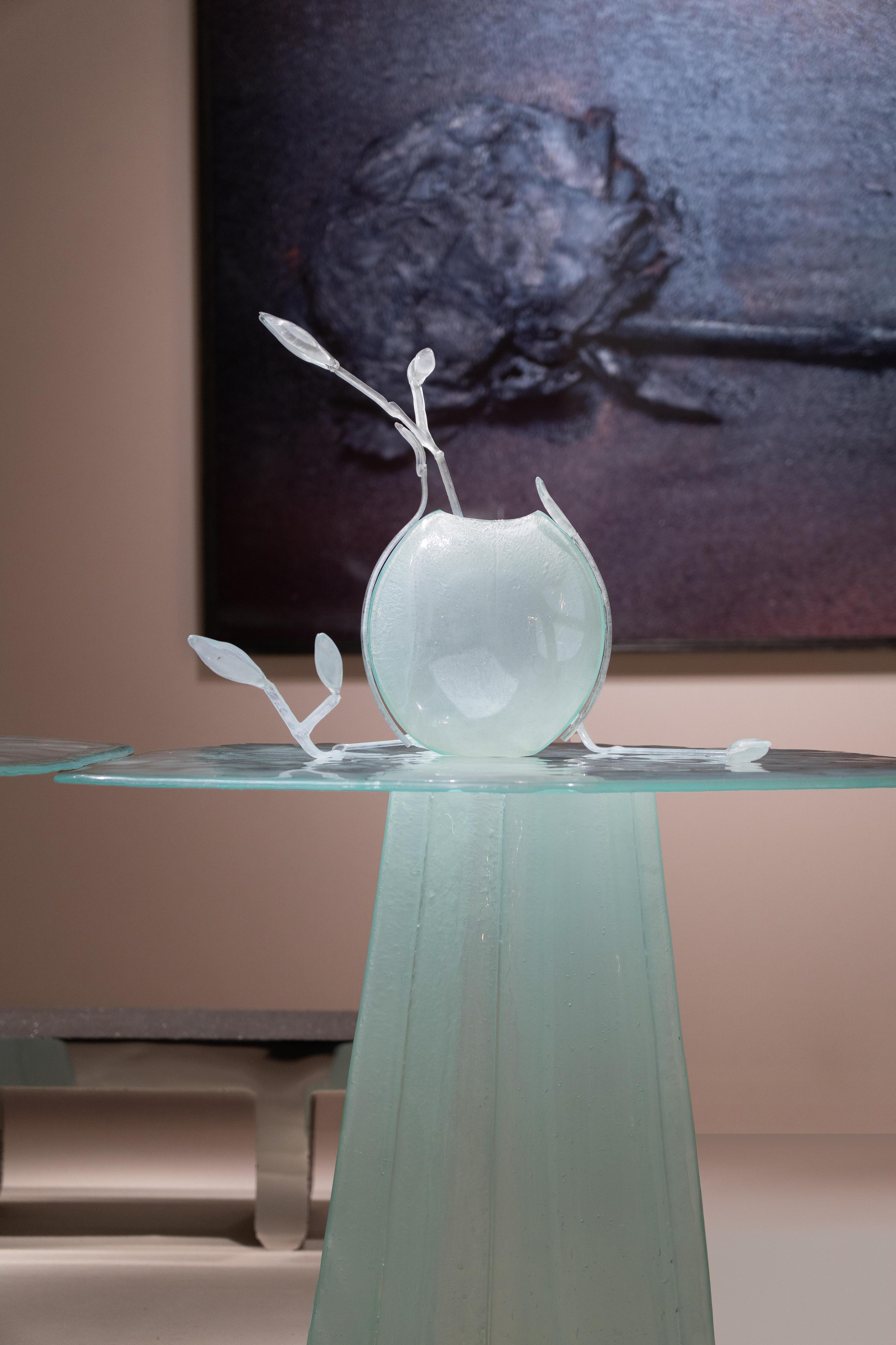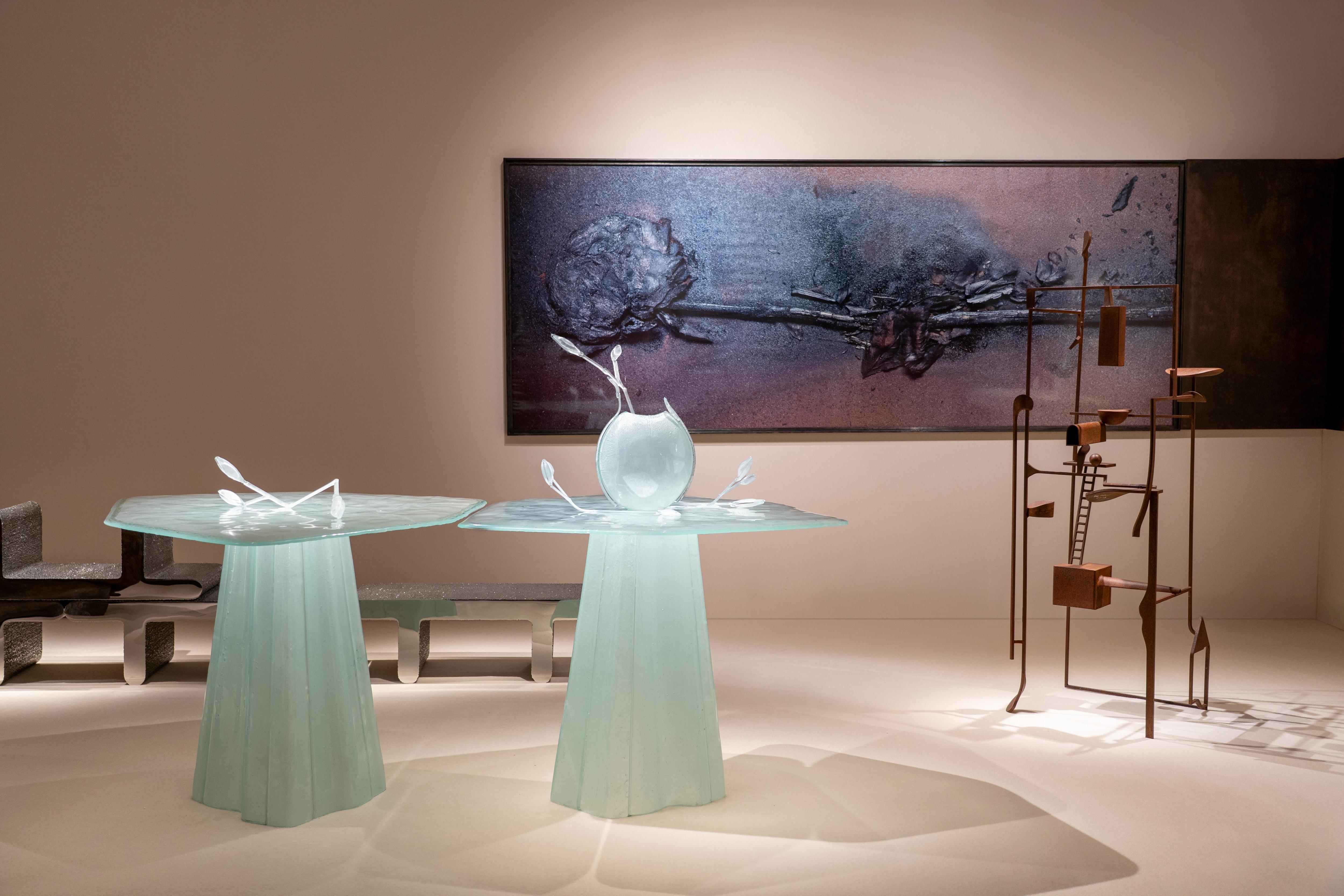 Еще одна премьера выставки в Лондоне — работы из стекла дизайнера Ксении Брейво. Ее коллекция Bijoux («Драгоценности») вдохновлена одноименным балетом, поставленным в 1960-е годы художником и хореографом Джорджем Баланчиным. Пластичность и легкость материала позволила запечатлеть движение, а особая техника запекания — добиться нужного оттенка.