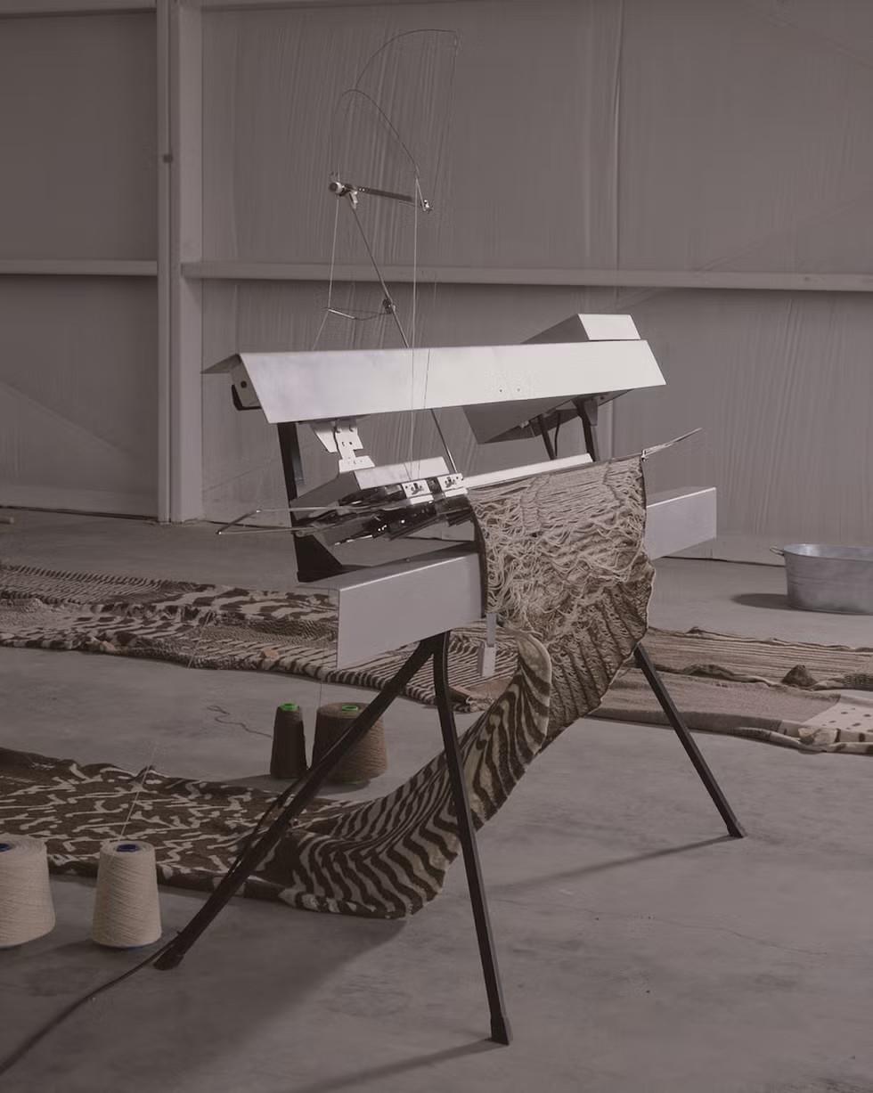 Коллекция сознательно разделена на две визуально и тактильно контрастные части, отражающие двойственность опыта работниц. Первая серия представляет жесткую эстетику промышленного производства через механистические паттерны. Вторая — посвящена человеческому измерению, воплощенному в теплых, неровных, фактурных поверхностях, отсылающих к джуту и ручному труду.