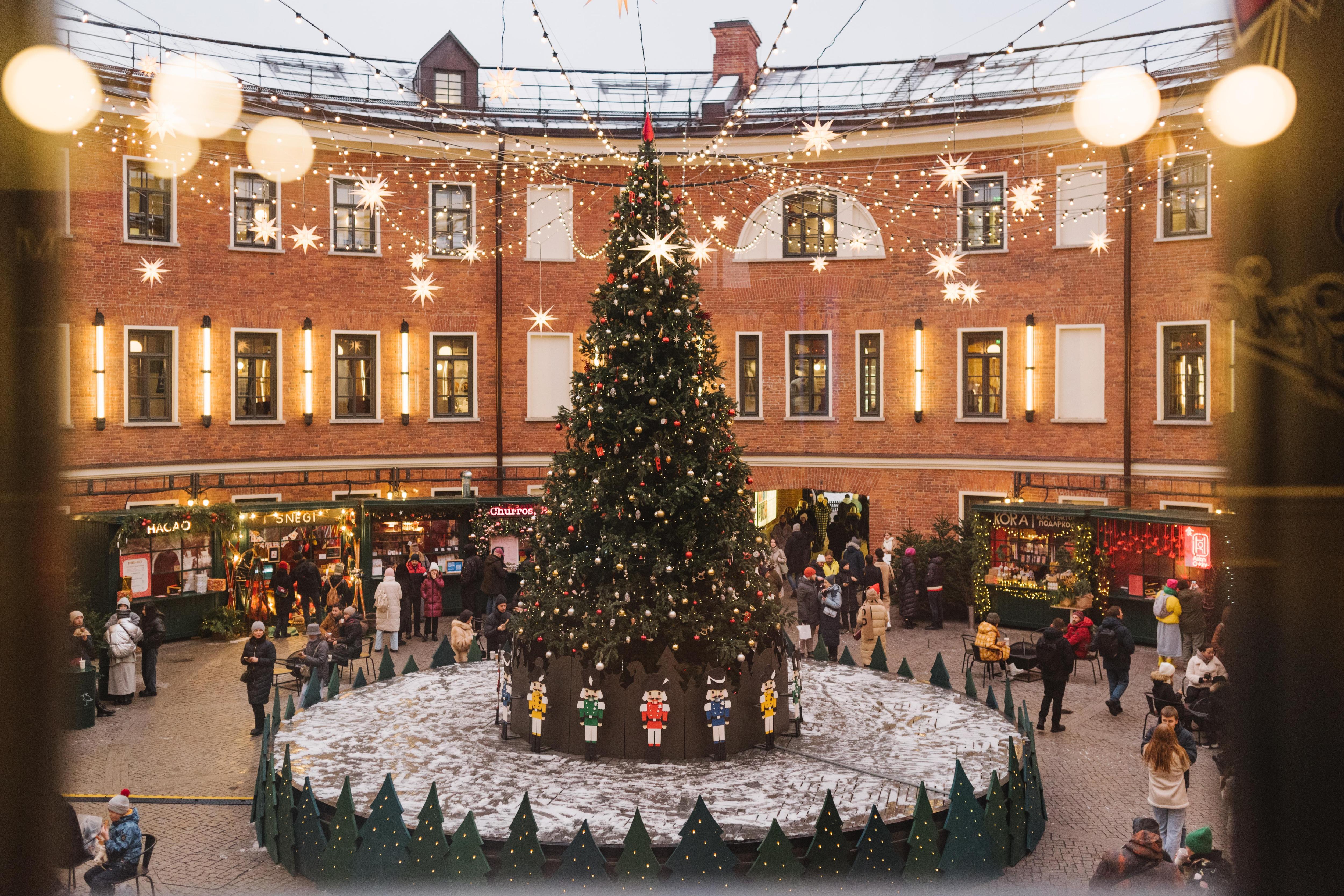 Главным символом праздника станет восьмиметровая живая ель, установленная во дворе здания «Бутылка». Ее окружают 16 ярмарочных киосков, где можно найти оригинальные подарки, елочные игрушки, винтажный декор, посуду, а также попробовать разнообразные деликатесы — от пончиков с креветками и римской пиццы до шведских пирогов и пышек. Еще 13 мастеров продемонстрируют свои авторские товары в Павильоне на Главной аллее.