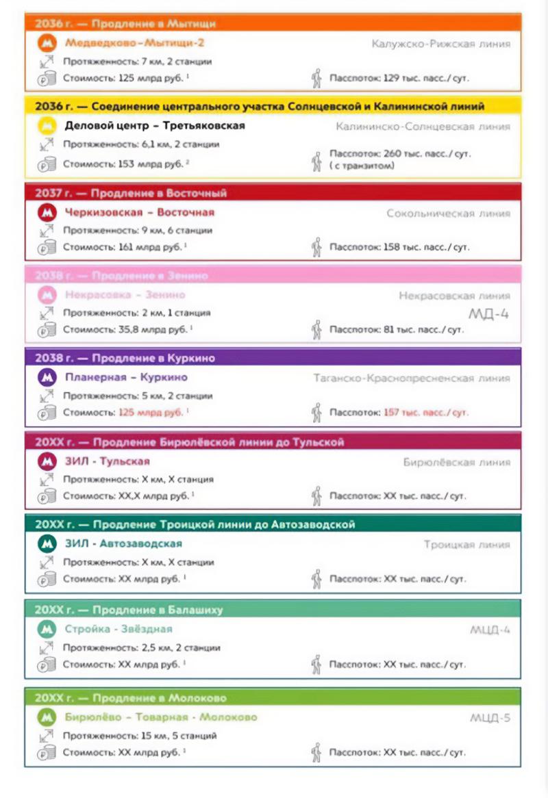 Шесть станций появится на Сокольнической линии — ее продлят от «Черкизовской» до «Восточной» в 2-3 километрах от МКАДа. Есть планы и на Таганско-Краснопресненскую линию: на северо-западе ее доведут до «Путилково» и «Куркино». Одна станция появится и на Некрасовской линии — «Зенино».