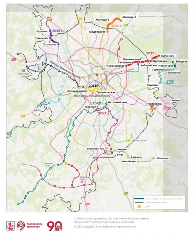 После 2035 года Калининскую и Солнцевскую линии соединят с двумя станциями в центре — длина связки составит 6,1 км, а пассажиропоток — 260 тыс. человек в сутки. Судя по всему, это будет одна из самых загруженных линий. Проект обойдется примерно в 153 миллиарда рублей.