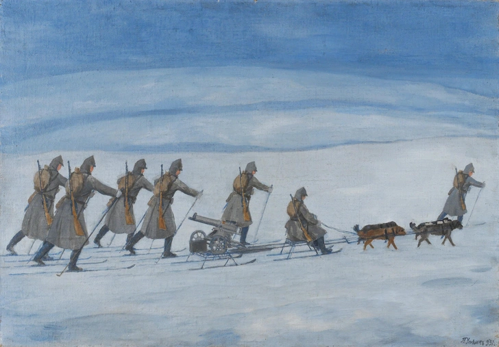 Петр Уткин. «Красноармейцы-лыжники». 1931. Холст, масло.