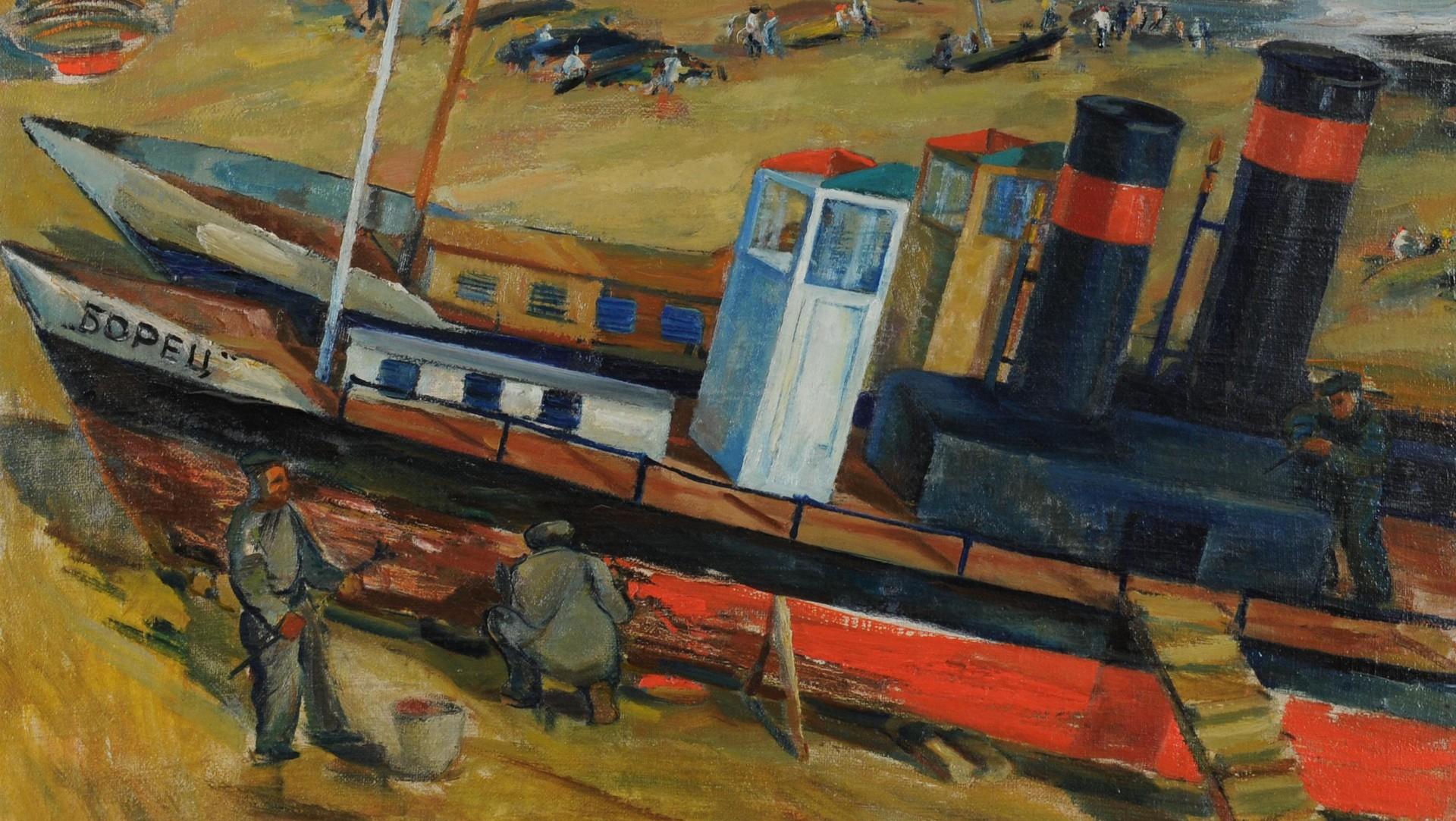 Владимир Кашкин. «Ремонт буксирных пароходов», 1933. Холст, масло.